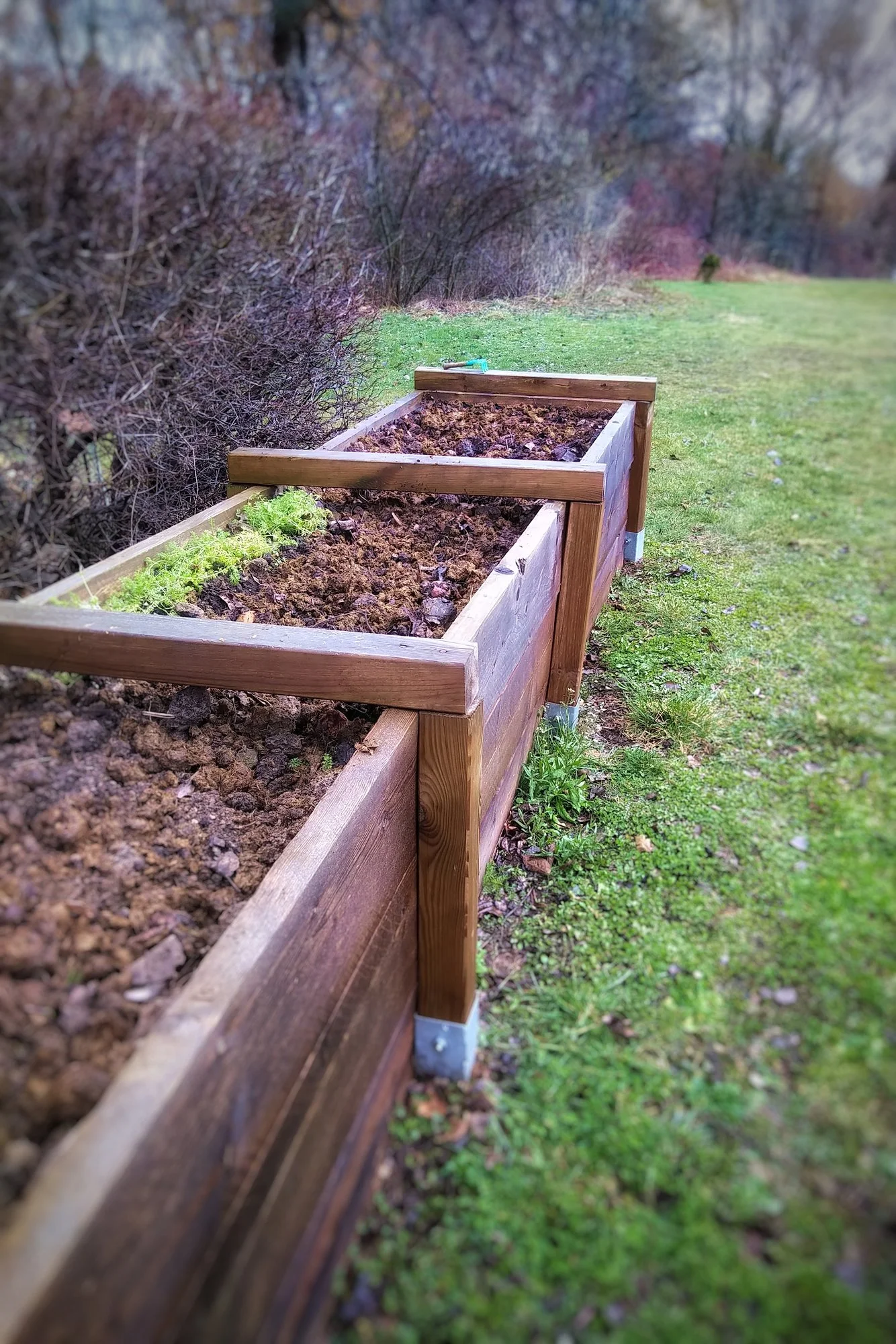 Noch mal kurz zum hinteren Ende geguckt, ja, sieht alles gut aus. Ob es zu früh ist, kurz mit dem Rasentraktor 'ne Runde zu drehen?