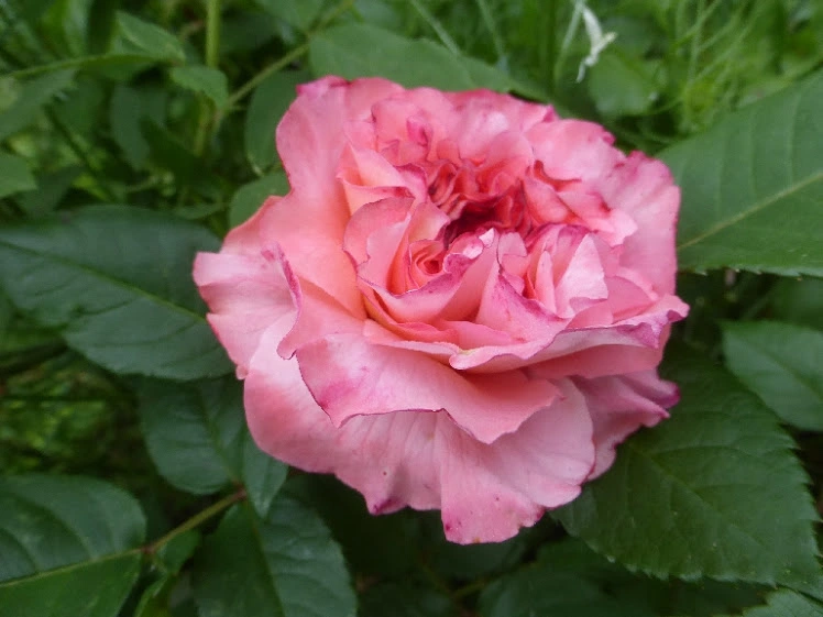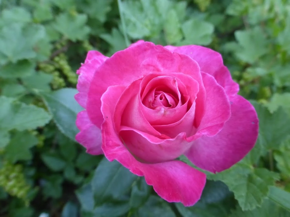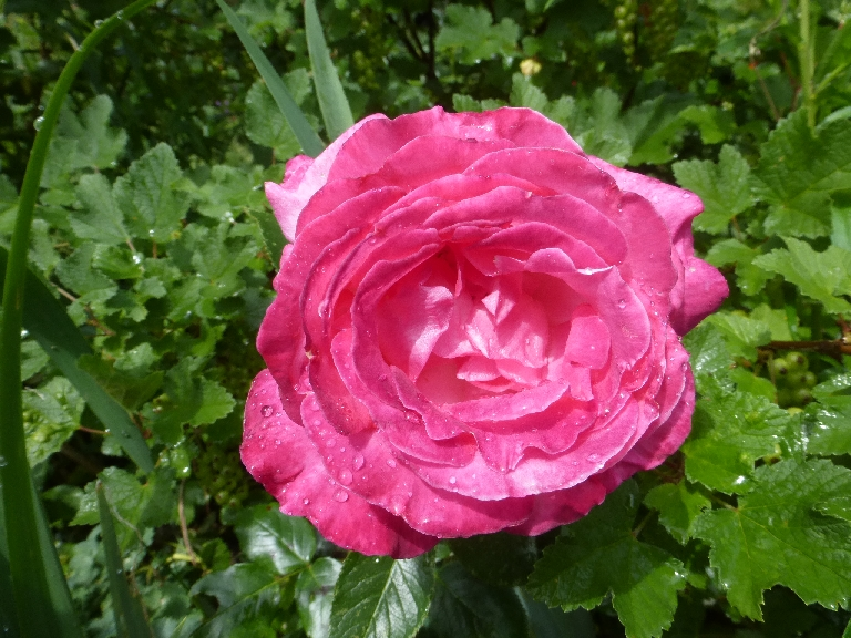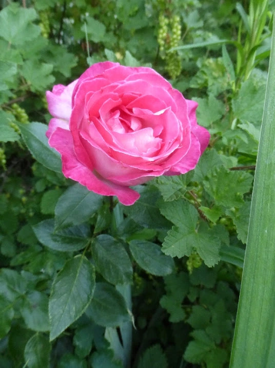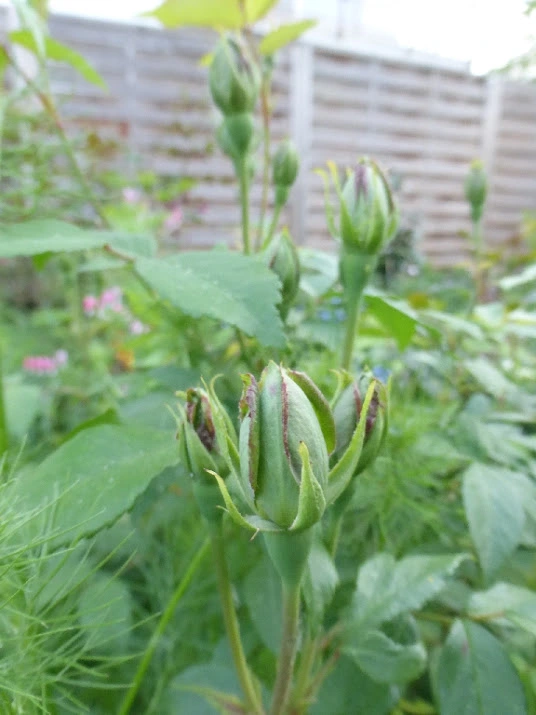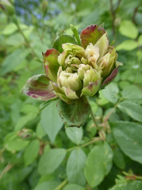 Viridiflora - ihr Kontrastprogramm, 'Augusta Luise' und die vielen Jungfern im Grünen, blühen grade erst auf, daher fällt sie noch nicht auf im dichten Grün