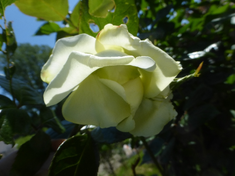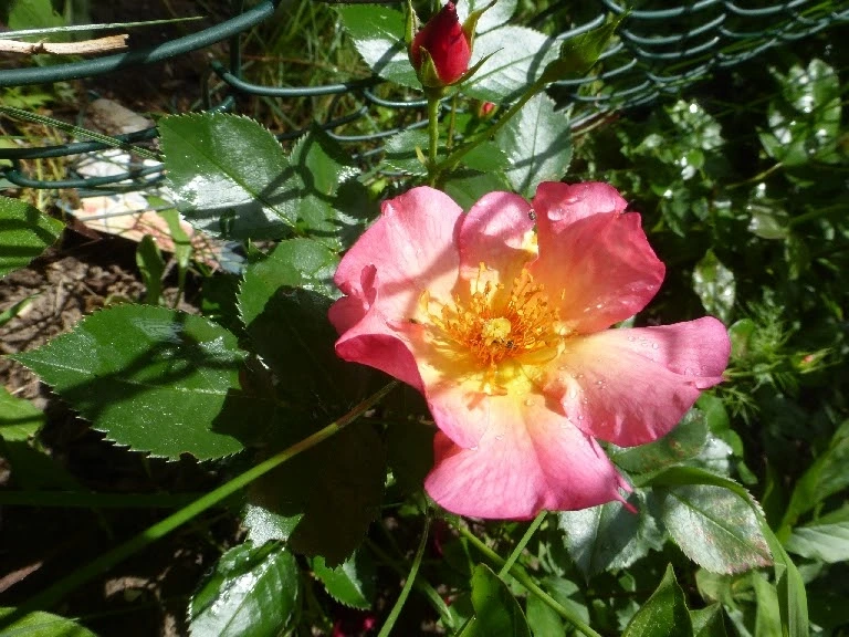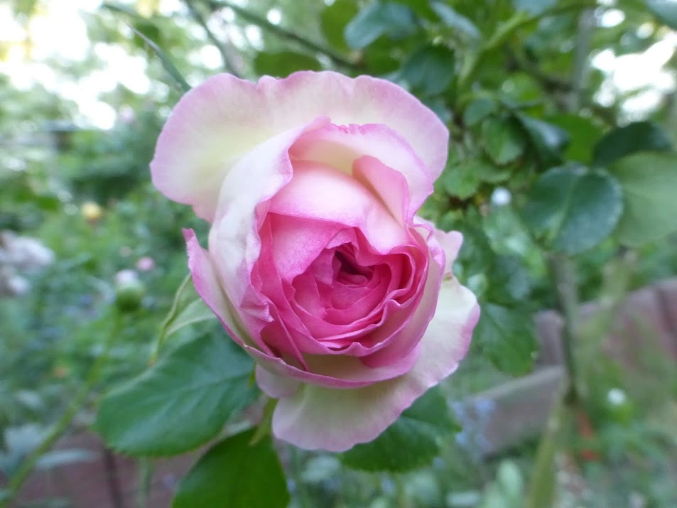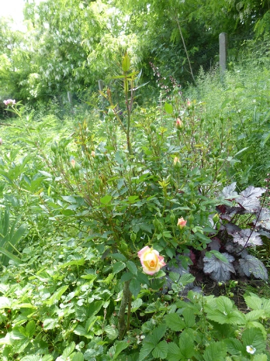 EdenRose85 heuer da. Letztes Jahr auch schon. Habe sie à la Kletterrose gebogen und befestigt, da sie immer der 'Elfe' daneben gen Himmel nacheilt. Darf sie...