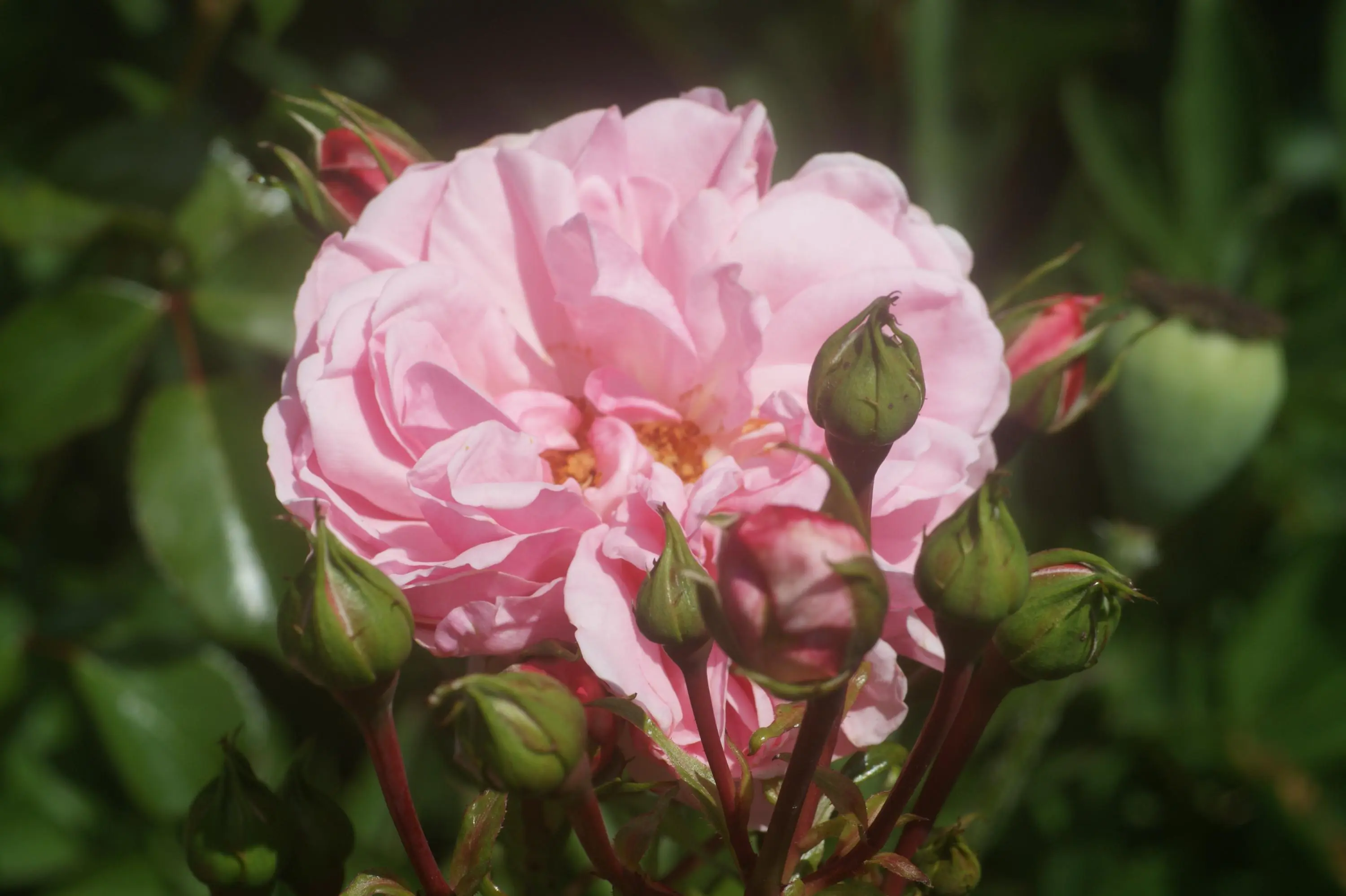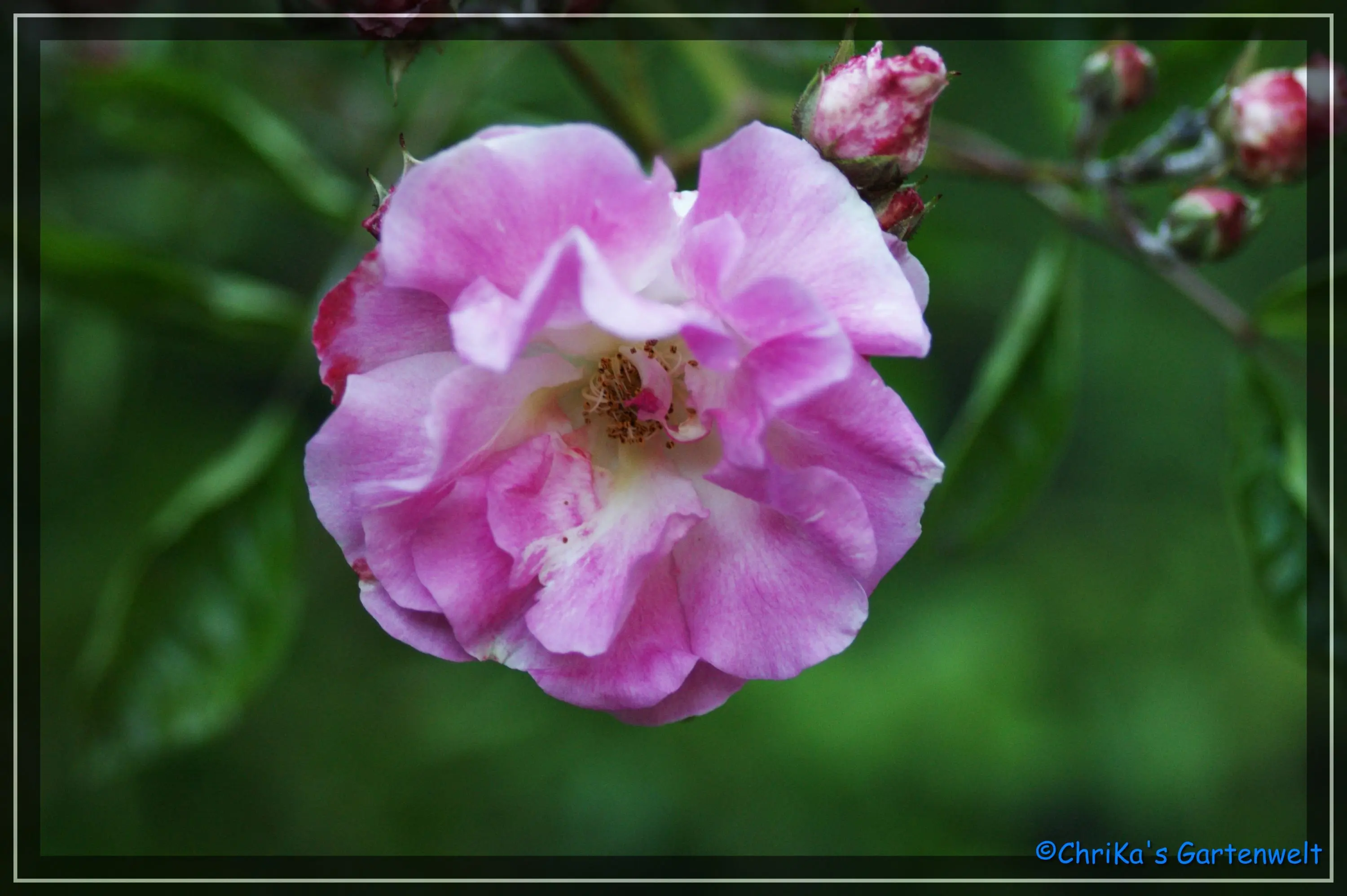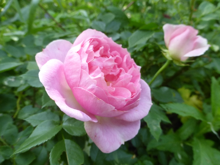 Das ist jetzt die, die mir besagter Billigversand als Versicolor untergejubelt hat. Hier wäre ich dankbar für einen Bestimmungsversuch. Eine zauberhafte, duftige, formschöne und offensichtlich ebenfalls alte Moosrose in hellrosa, aber definitiv keine Versicolor.
