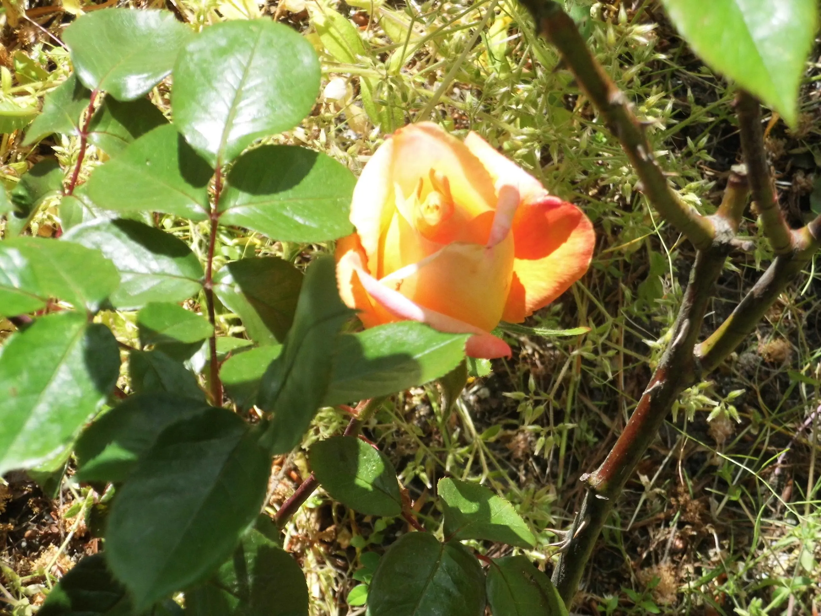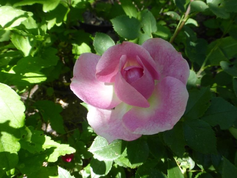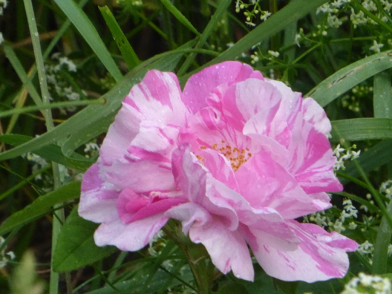 Diese kleinblütige Rose blüht seit gestern. Ich weiß nicht, wie sie in unseren Garten gekommen ist. Sie wächst unter einem Baum in unserer wilden Ecke.
