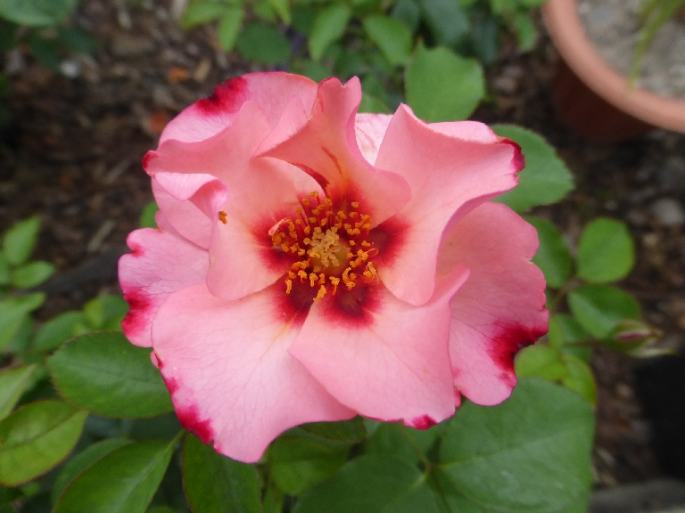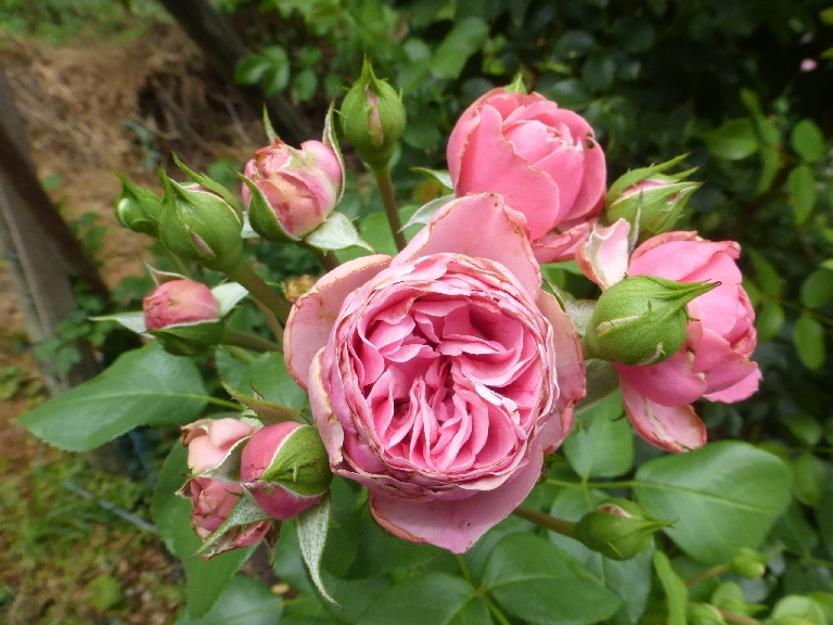 Neben dem hübsch blühenden Farah-Stamm ist nun erstmalig auch die 2014 gepflanzte Strauchrose aufgeblüht. Ich bin heilfroh, dass die Sorte stimmt.