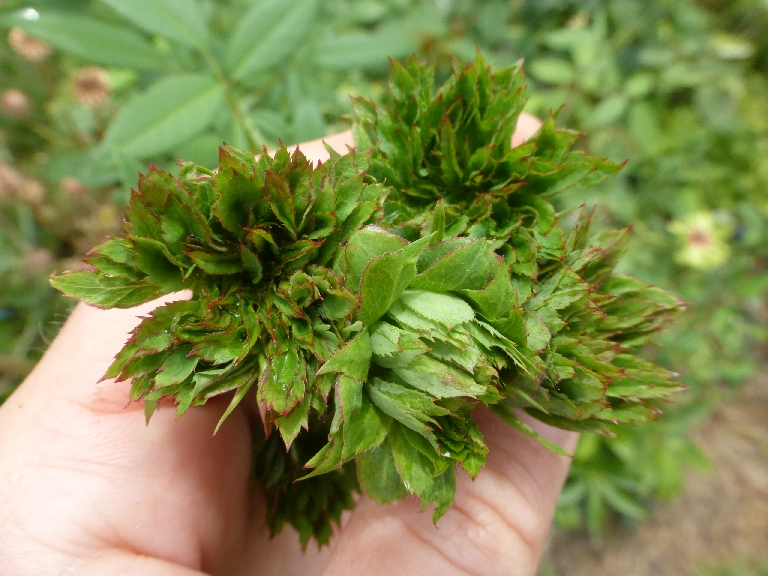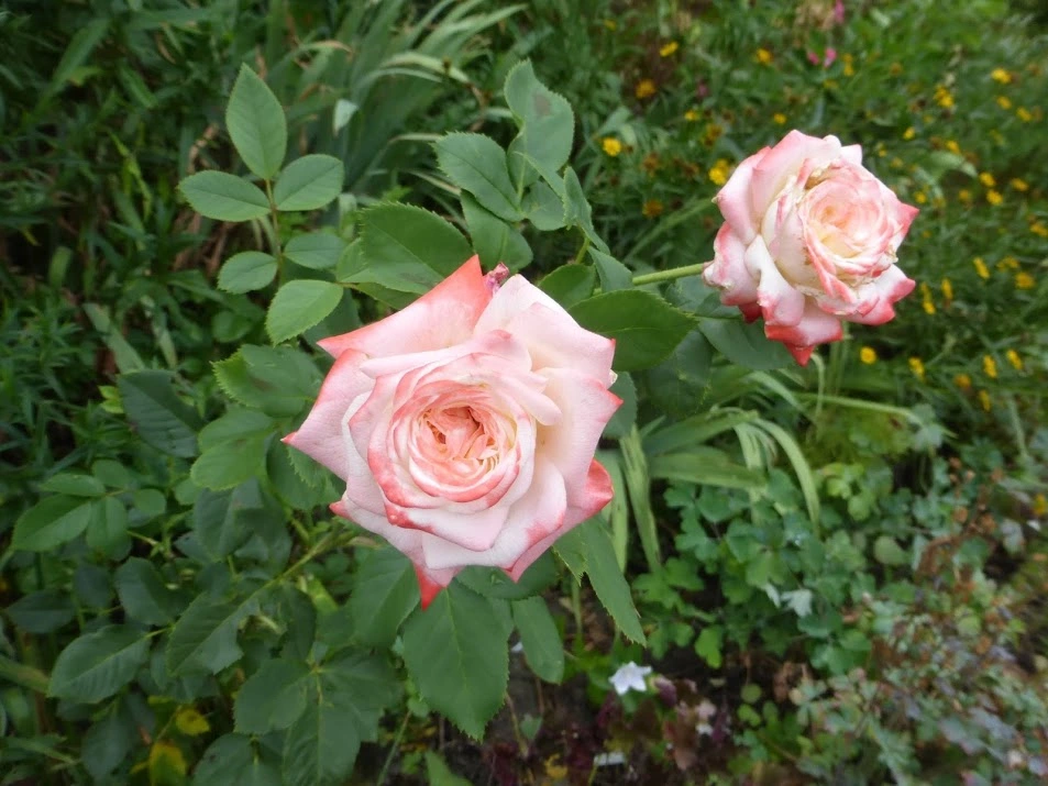Die eine falsch gelieferte Rose trägt im Blütenbüschel eine Zwillingsblüte: