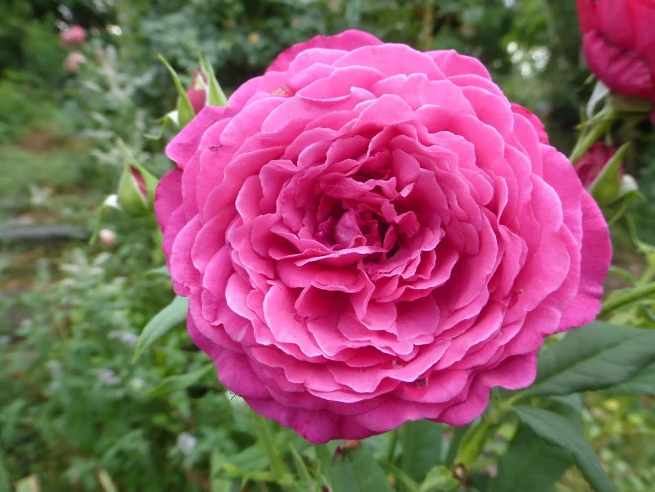 Johann Wolfgang von Goethe hat diesen Riesentrieb hochgereckt, an dem zahlreiche Knospen sitzen. Einige sind diesmal auch schön bis makellos erblüht. Sie sind wunderbar dicht gefüllt und duften toll.