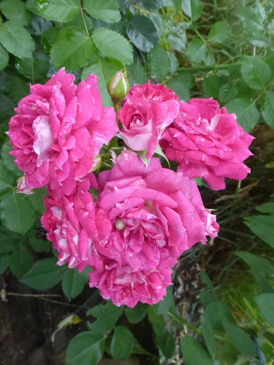 So, neben zu vielen braunverunzierten Blüten habe ich hier doch einige, die ich zeigen kann. Nur eine neue, ansonsten alles bekannte Rosen.