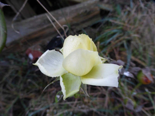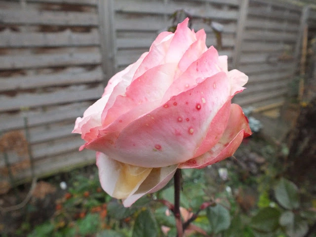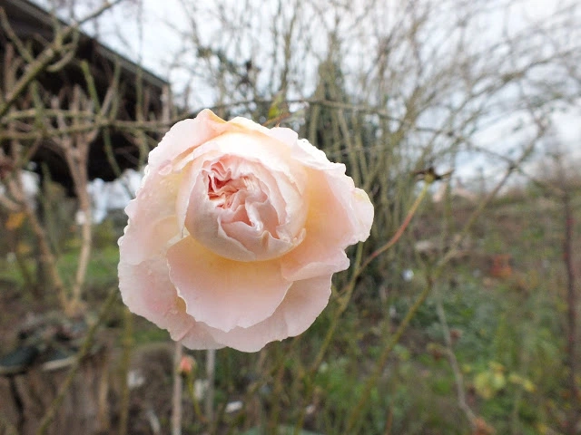 Bei uns ist es erst seit heute kalt, rund 4° haben wir noch. Davor war es sonnig und mild, und am 2. Weihnachtstag habe ich die vorletzten rosa/pink/apricot Rosen verschenkt. Abraham Darby hatte mich damit überrascht, dass der völlig nackte Kerl eine letzte mickrige Knospe tatsächlich noch aufgemacht hatte. Duftete auch. Die Nostalgie im Strauch roch aber besser, dabei duftet die nicht mal immer.