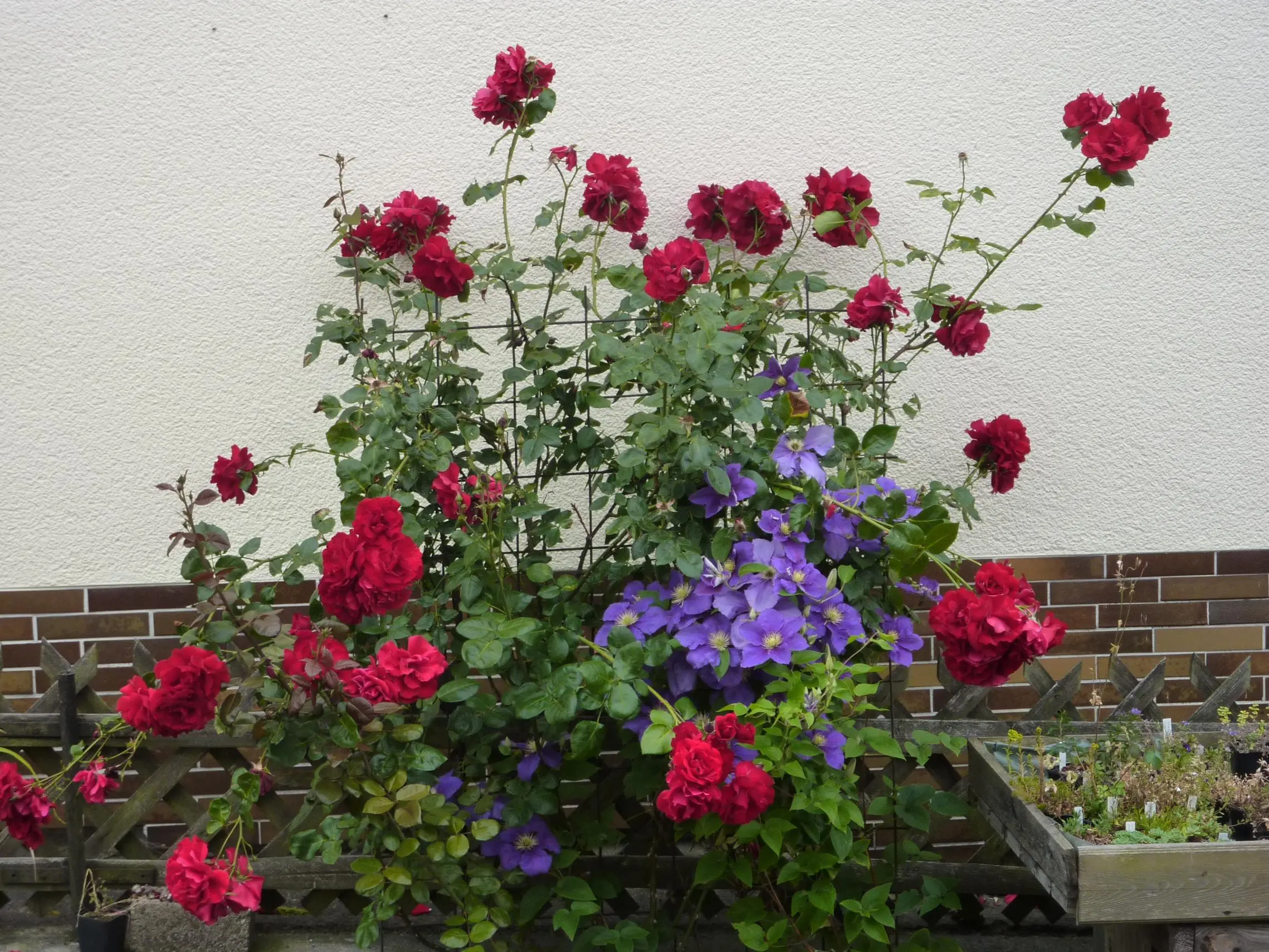 Die Kletterrose " Musimara " ist unsere Lieblingsrose obwohl die Polyantharose " Alotria " auch schön und lange blüht .