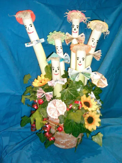 gestern hab ich mich mal wieder kreativ betätigt, um ein Geldgeschenk zu einem 5o. Geburtstag zu "verpacken", die meisten wünschen sich ja heute Geld, und einfach so in einem Umschlag?- ne das ist doch nix!
