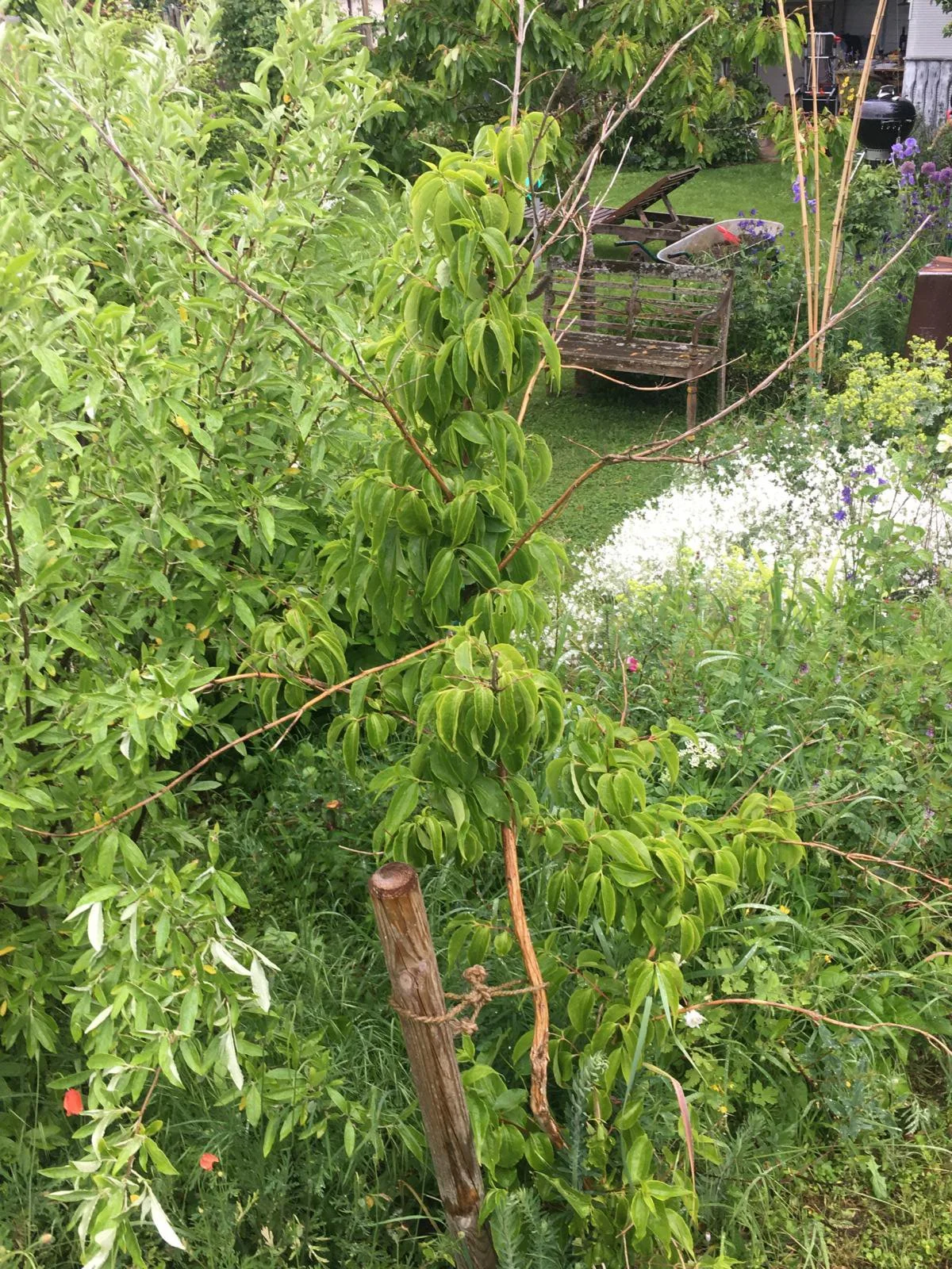 Also in dem Garten, mit dem dieser Fred begonnen hat - bei der früheren Freundin - ist er im mittlerweile 6. Jahr zu einem stattlichen Busch gewachsen, der im Sommer keinen Durchblick zulässt.