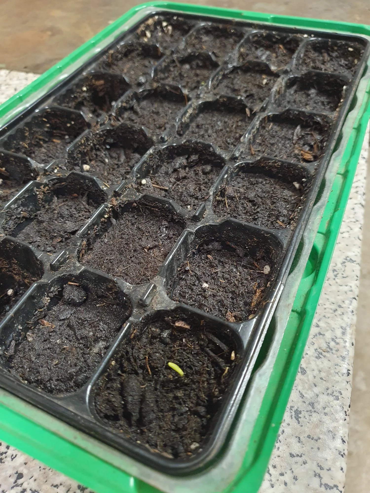 Hallo liebe Formengemeinde, letztes Jahr habe ich mehrere Samen aus den Zapfen meiner frisch gepflanzten Abies Koreana Silberlocke nach Anleitung ins Saatgutschälchen gepflanzt. Die Schale steht seit 3 Monaten Kühl in der Garage und heute habe ich doch tatsächlich einen ersten Sämling gesehen.