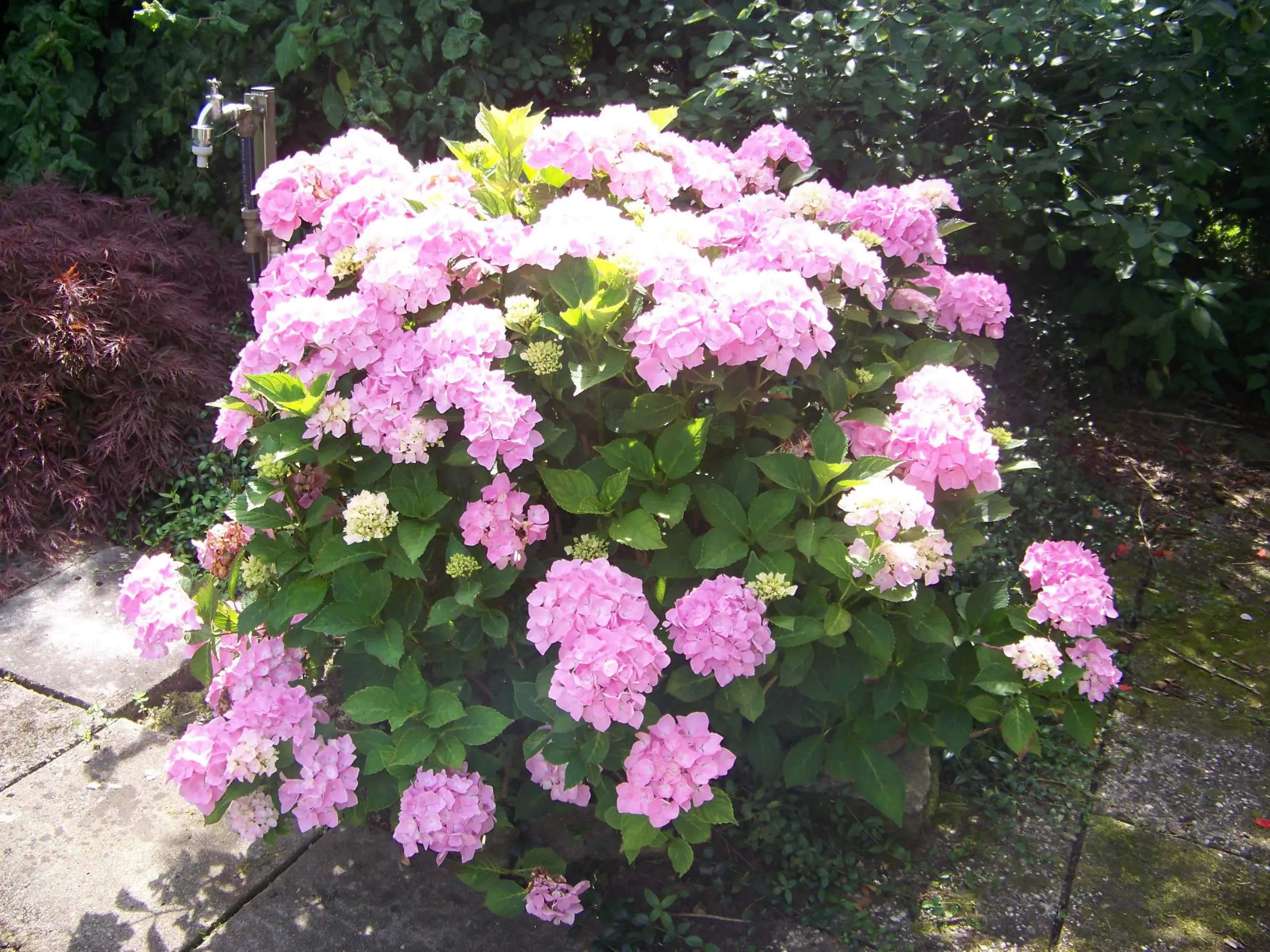 Der erste Strauch konnte sich wohl nicht entscheiden, ob er nun blau oder rosa blühen will. Da rosa überwiegt, kommt er hier hinein.