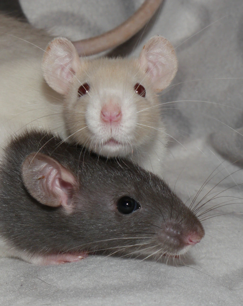 Gestern, am 04.04.2018, musste ich Yoshi gehen lassen. Sie litt an beiden Füßchen an Pododermatitis, die mittlerweile schon die Knochen angegriffen hatte. 2 Wochen wurde sie mit Schmerzmittel + Antibiotikum behandelt, doch ihr Zustand verschlimmerte sich nur... Anfänglich konnte sie noch halbwegs okay laufen. Doch die letzten Tage lag sie nur noch auf einer Käfigebene auf einer Decke. Ich versuchte sie zu päppeln, doch ich spürte, dass keine Besserung eintreten würde... Ach, kleine Yoshka. Du hast im Rudel - mit Beat und Rhyme - den Ton angegeben. Du warst immer freundlich und aufgeschlossen. Es sei denn, dir wollte jemand den Rang streitig machen - da gab es eine Abreibung. Du warst eine meiner ersten Ratten. Darum habe ich dich ganz fest in mein Herz geschlossen.