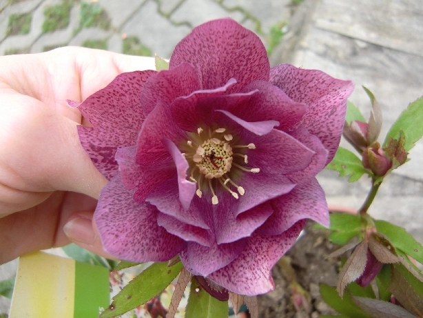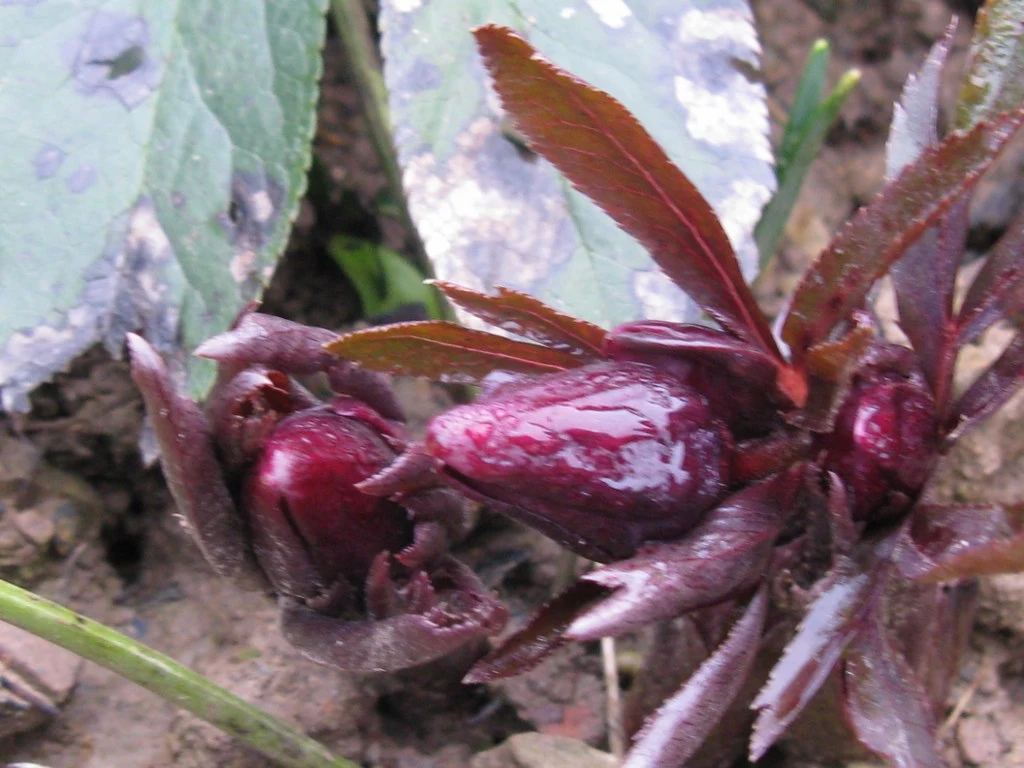 Hier die Knospen meiner dunklen Helleborus, der Name fällt mir grad nicht ein: