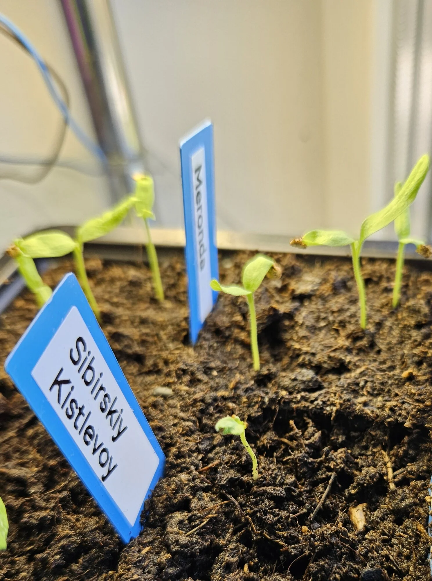 Die Sorte Jewel Amethyst hatte ja gekeimt - davon ist ein Keimling nicht aus der Erde gekommen, einer sieht normal nach Aubergine aus und einer nach etwas anderem (obwohl der Samen eindeutig von einer Aubergine war.