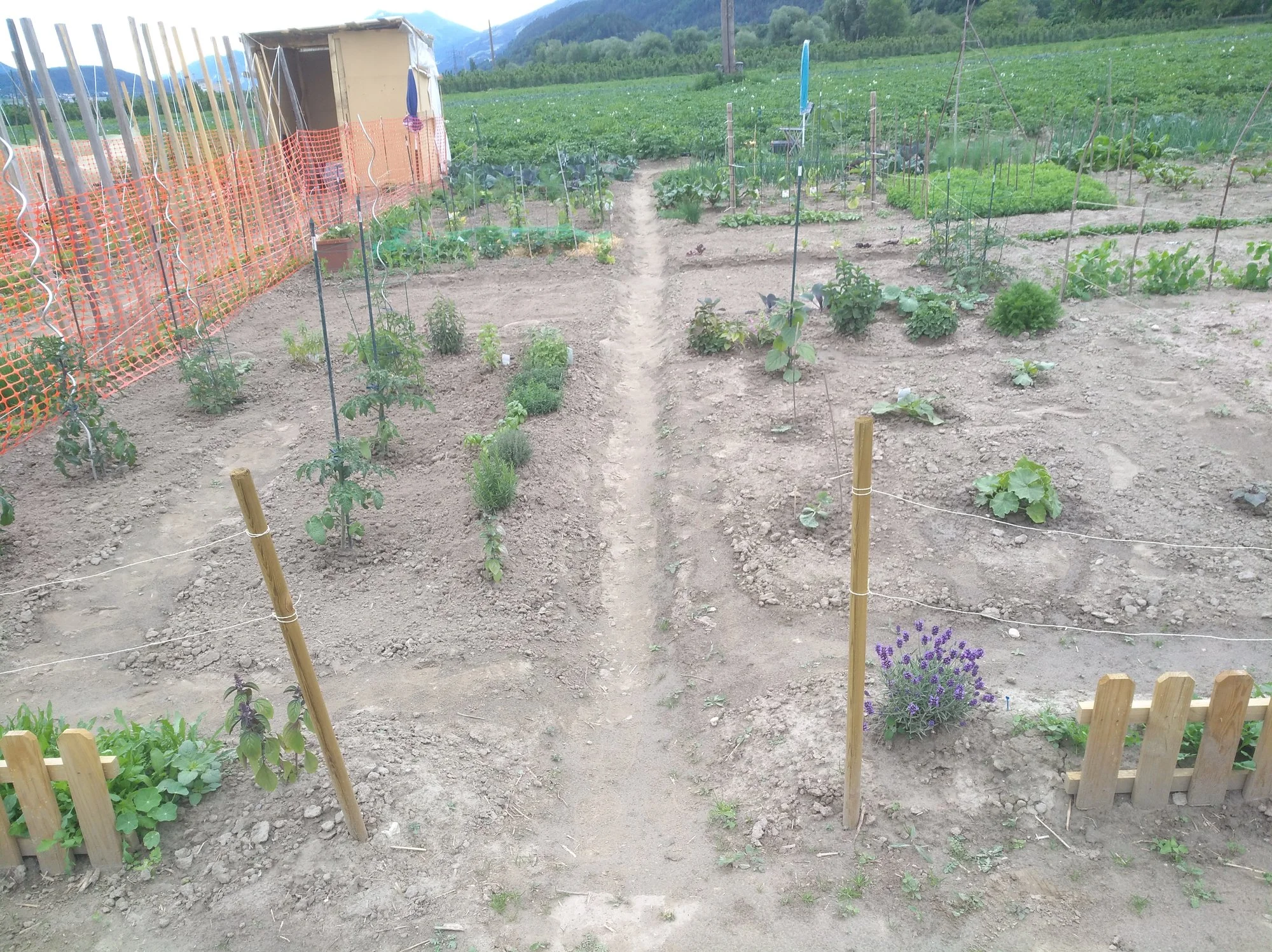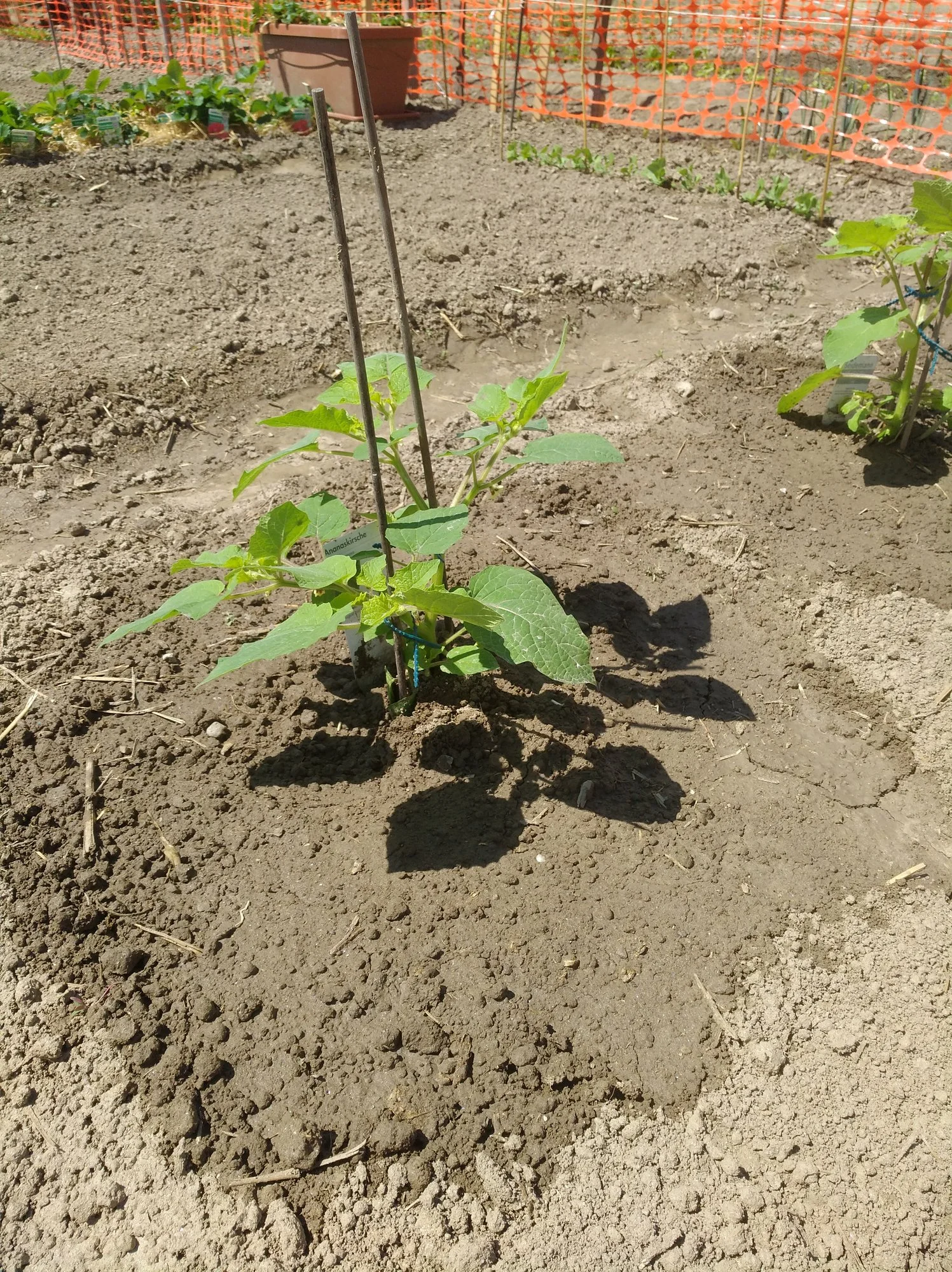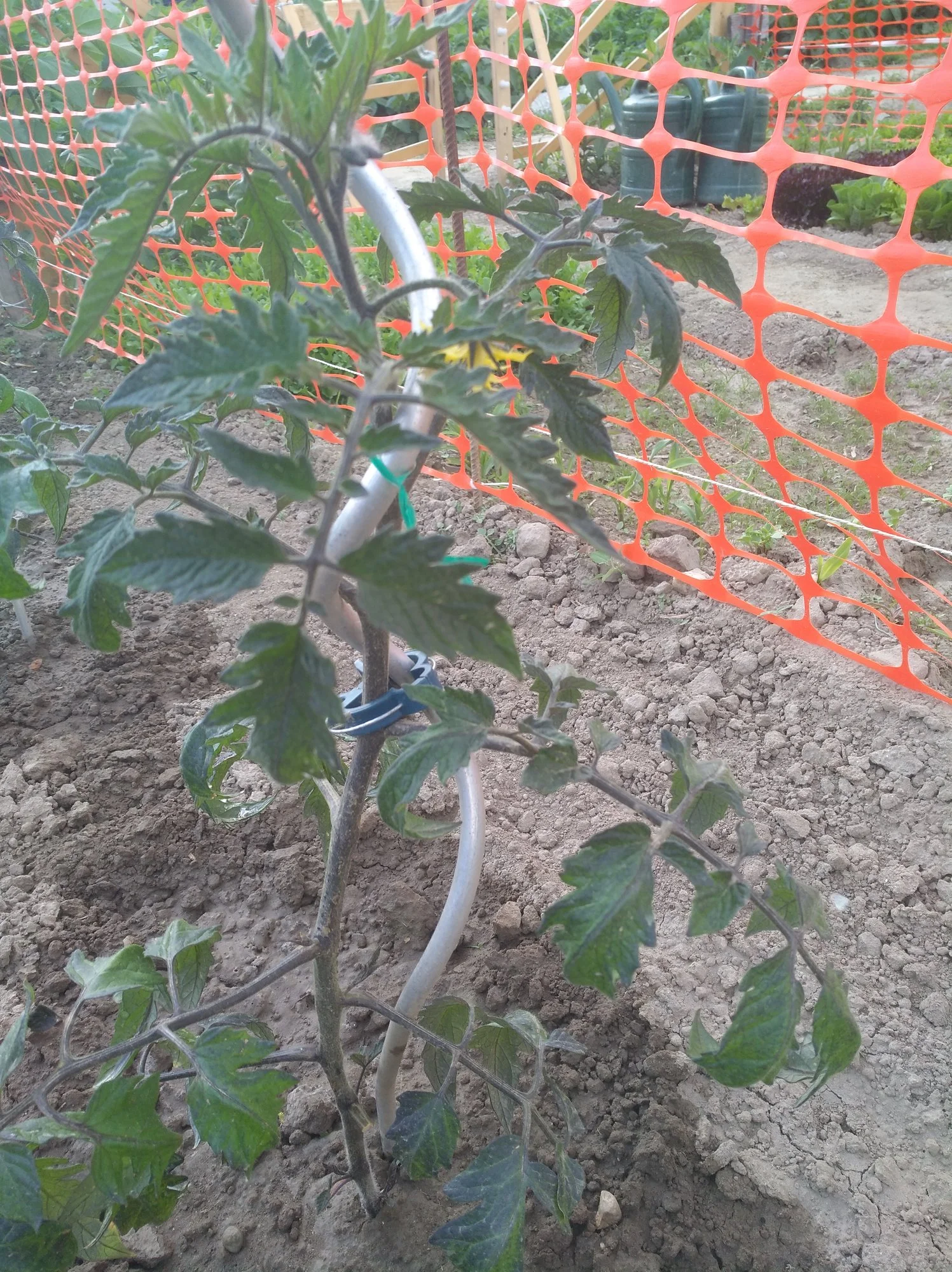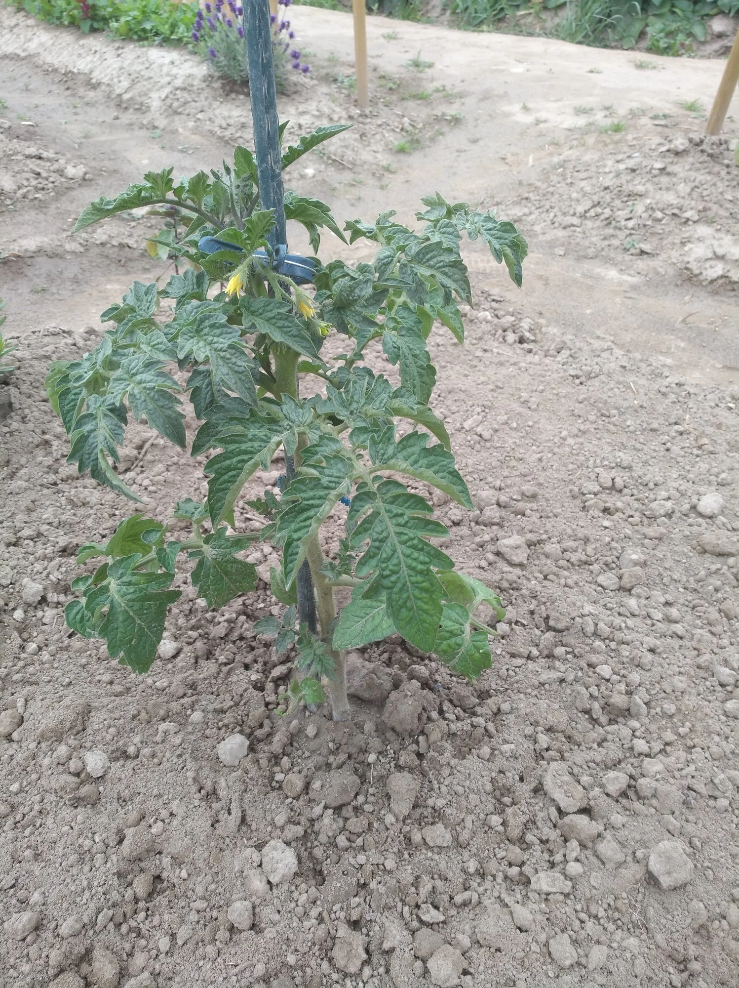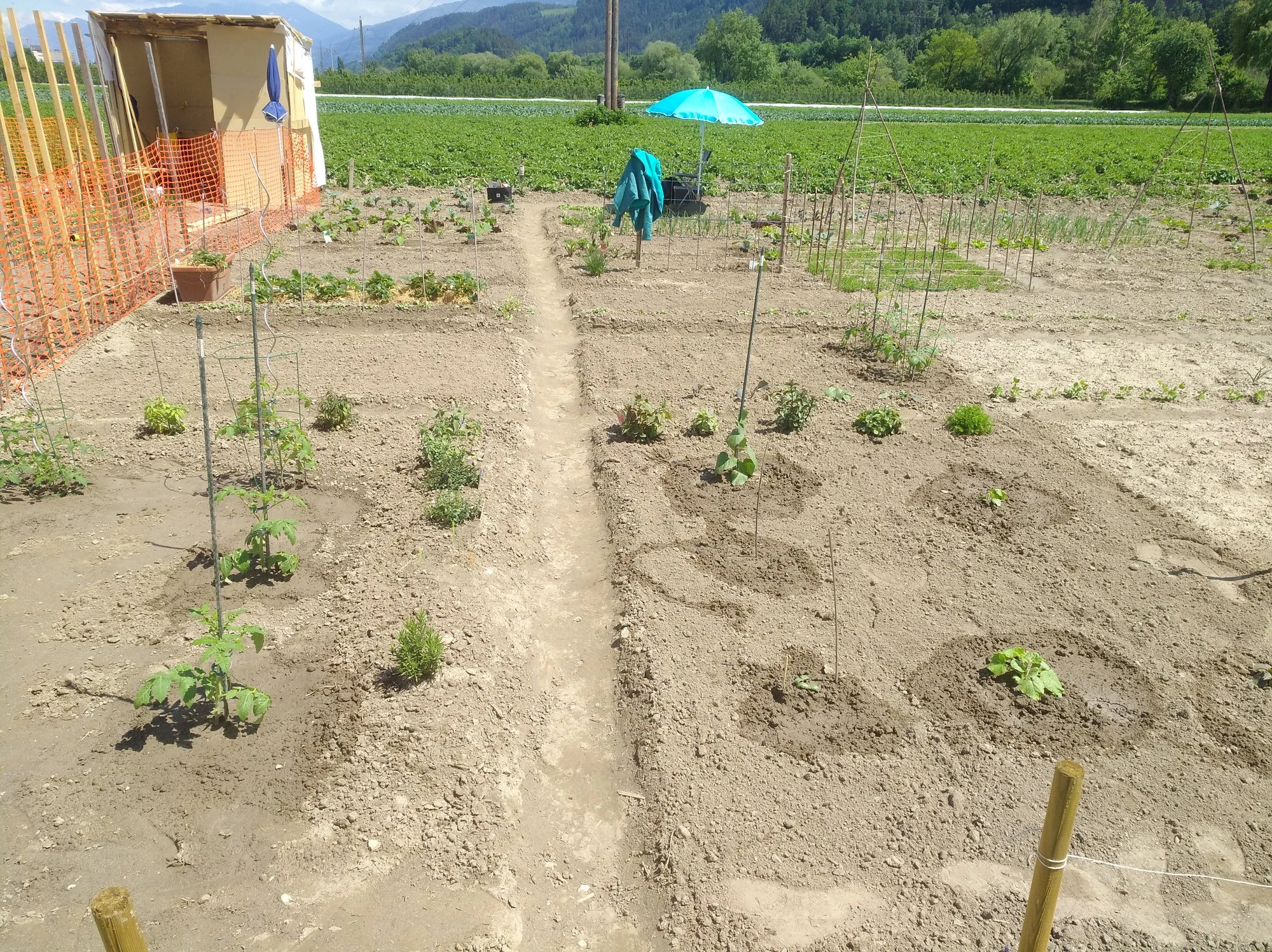 Es ist vollbracht - alle Tomaten und Ananaskirschen sind eingepflanzt. Für heute waren zwar noch Regenschauer vorhergesagt, aber ich wollte eine etwaige trockene Phase wenn möglich nutzen, um von der kompletten Windstille zu profitieren. Morgen soll es schon wieder windiger werden, am Montag überhaupt schon wieder sehr starker Wind. Da wäre die Gefahr einfach groß, dass der Wind beim Weg vom Parkplatz zu meinen Parzellen bzw. beim Einpflanzen Triebe und Blätter bricht (hatte ich die letzten beiden Jahre).