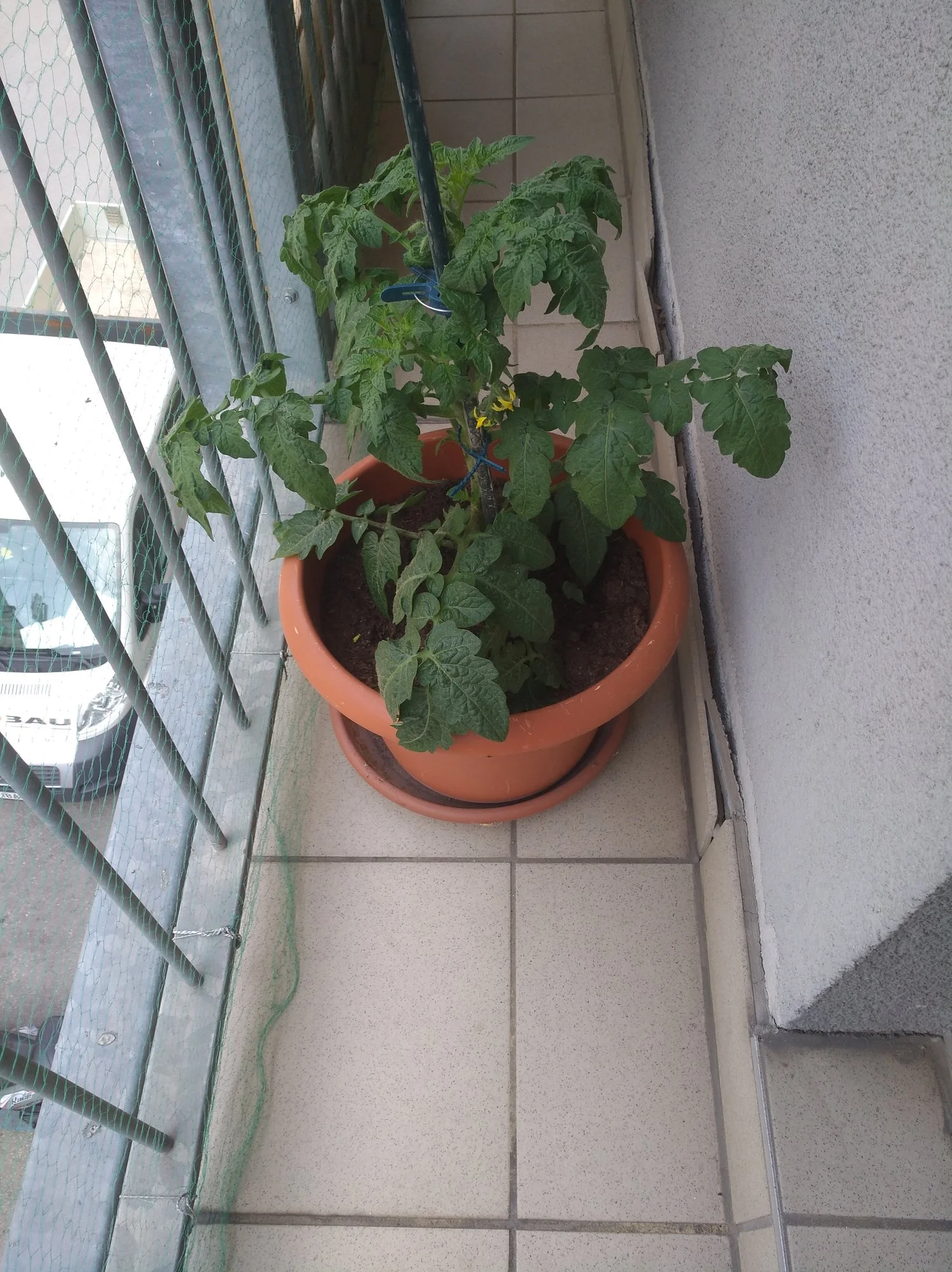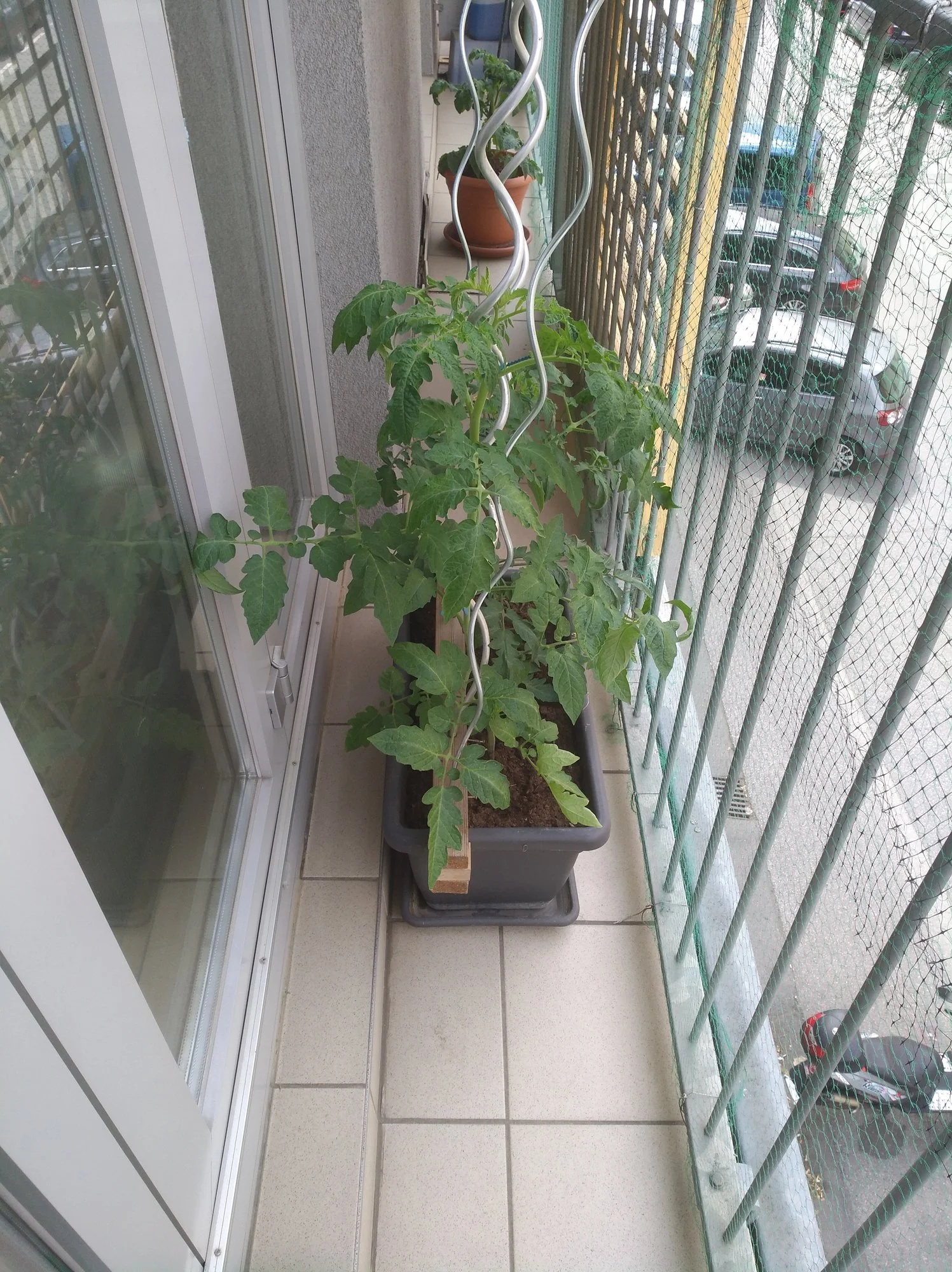 Und ich bin wirklich heilfroh, dass ich am Samstag noch gepflanzt habe, der Wind war gestern Nachmittag schon stark und heute eher heftig. Bei den Wildtomaten wird es wohl den ein oder anderen der Geiztriebe erwischt haben. Aber das ist bei denen quasi egal.