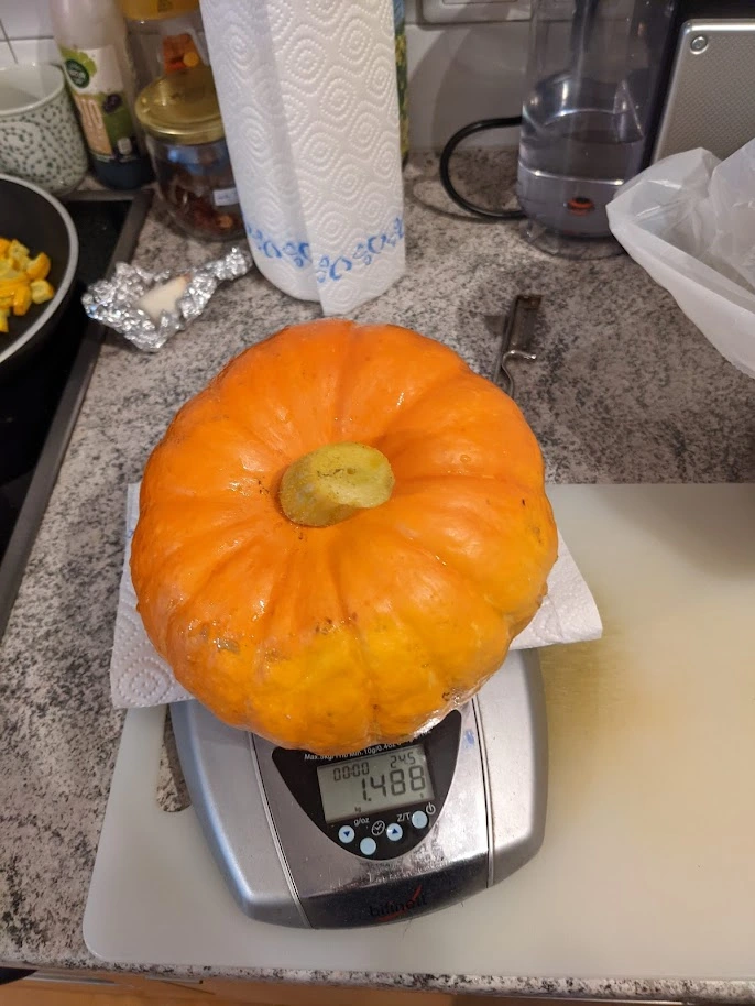 Aus der zweiten Hälfte habe ich heute noch Kürbisgulasch gemacht, das war extrem gut.