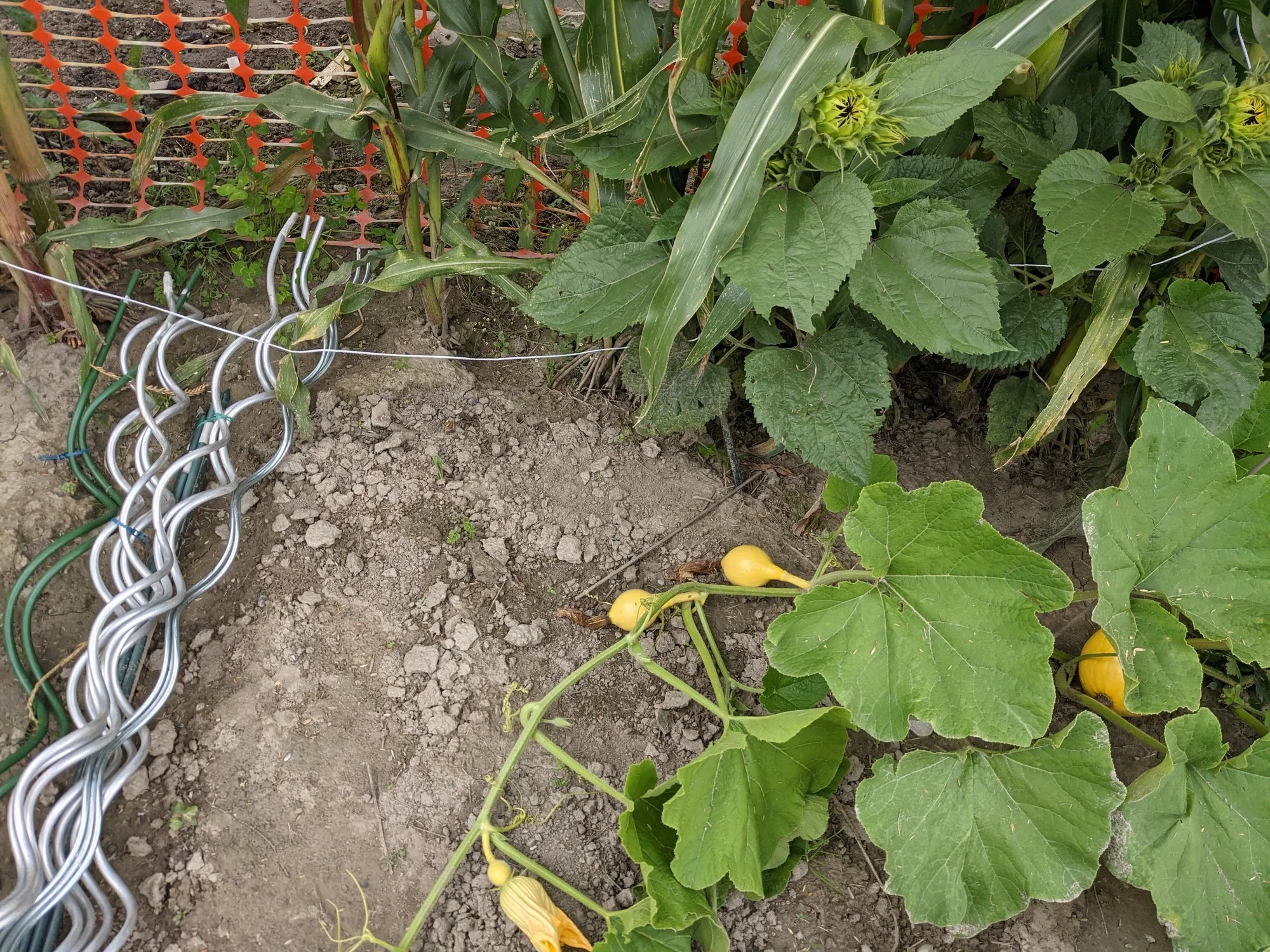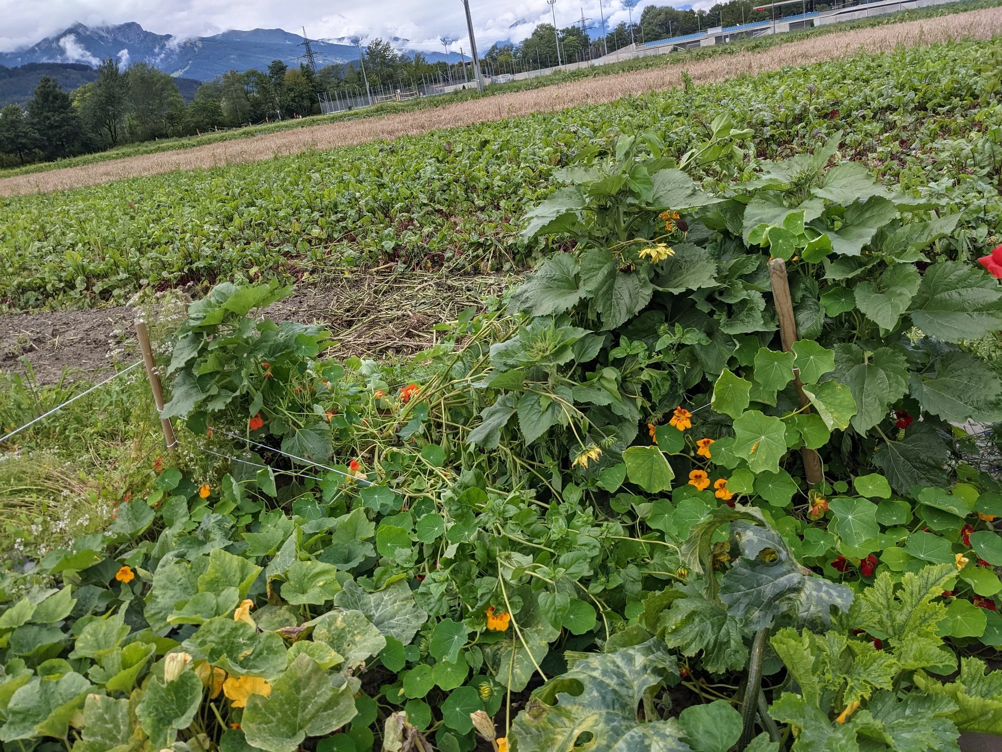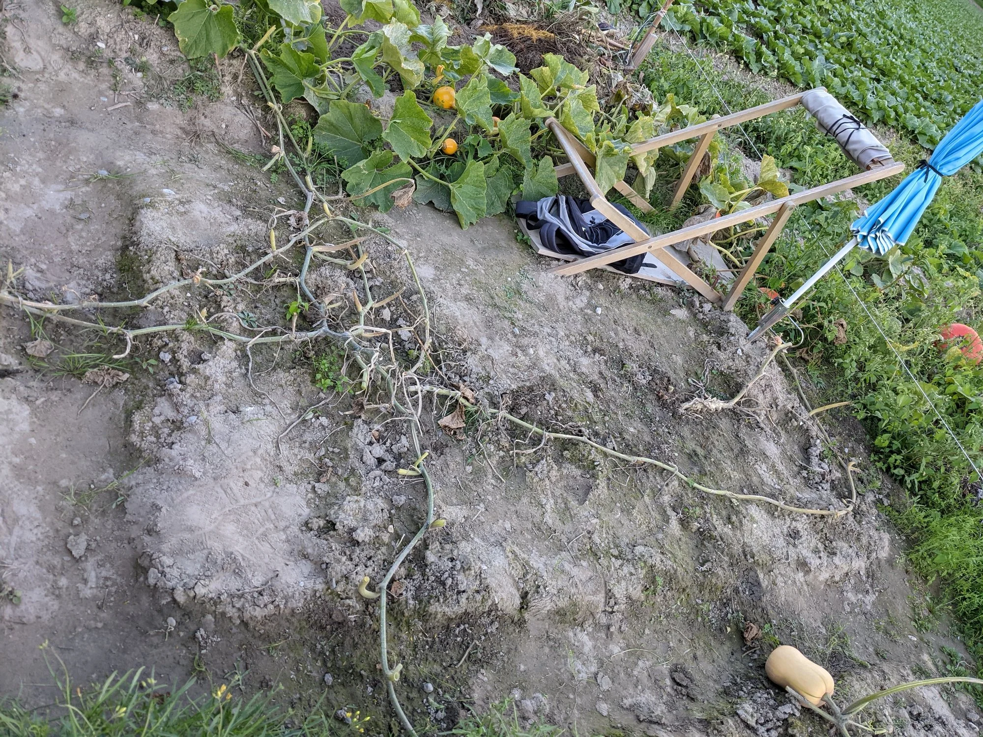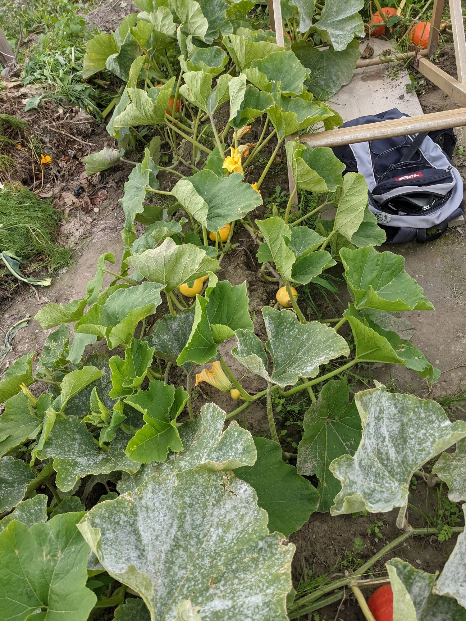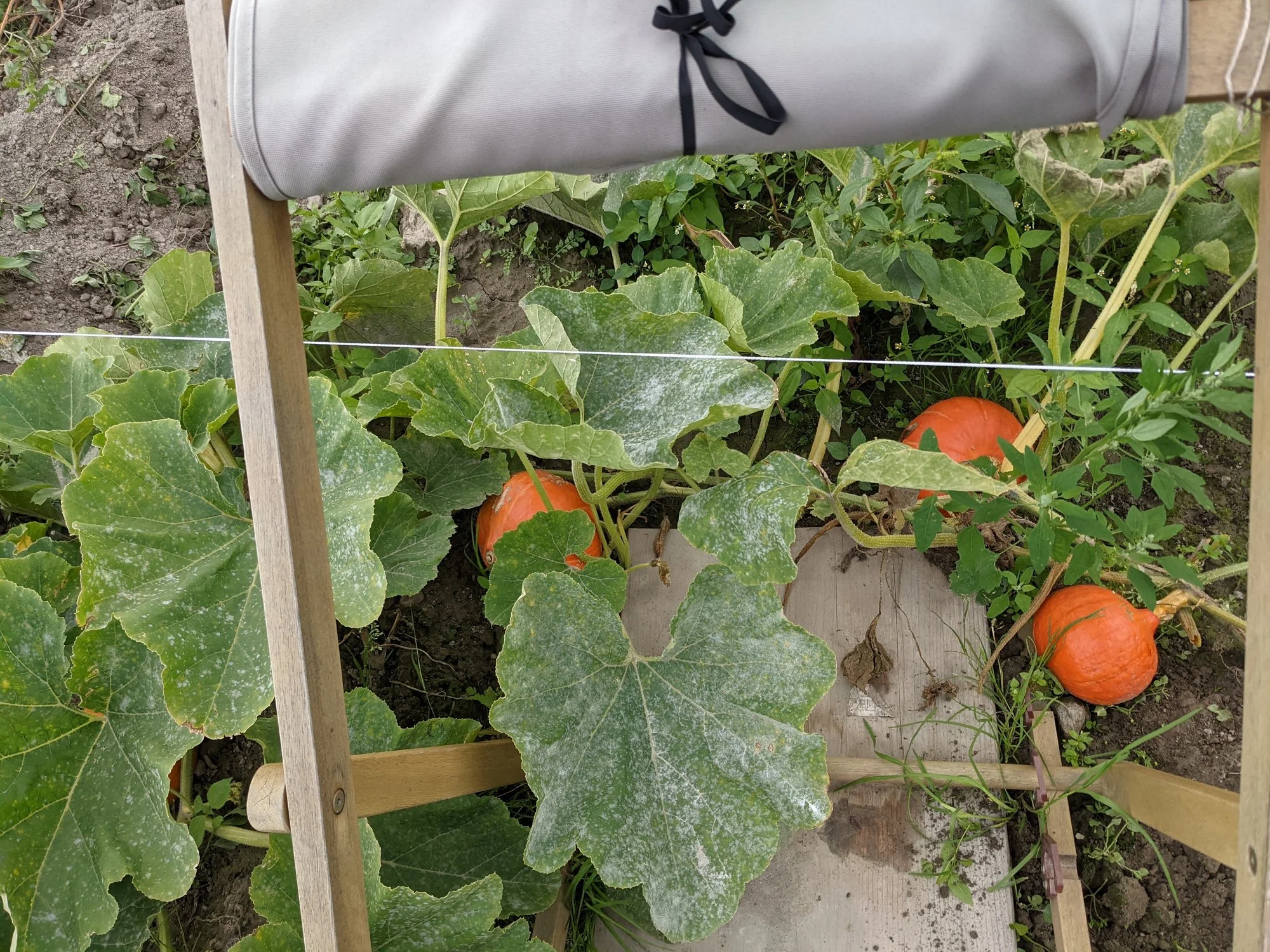Gestern habe ich mal ein paar Blätter abgemacht - aber nicht alle. Bei der Menge an Krankheitserregern, die unterwegs sind, ist es eh schon egal. Und so bietet das ein oder andere Blatt noch etwas Sichtschutz auf die Früchte. Gerade die Hokkaidos würden dann schön rausleuchten. Ich habe gestern wieder eine Türkin beobachtet, wie sie quer durch einige Parzellen sparziert ist (nehmen hat sie sich dann nichts getraut, weil sie mitbekommen hat, dass ich sie beobachte).