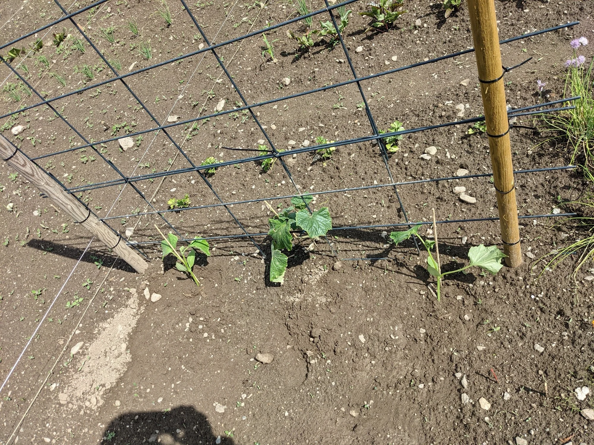 Oh, wo gibt es solche Rankgitter?2 in den Boden eingeschlagene Pfosten und dazwischen 2 Standard Rankgitter von 50cm - alles mit Kabelbinder verbunden