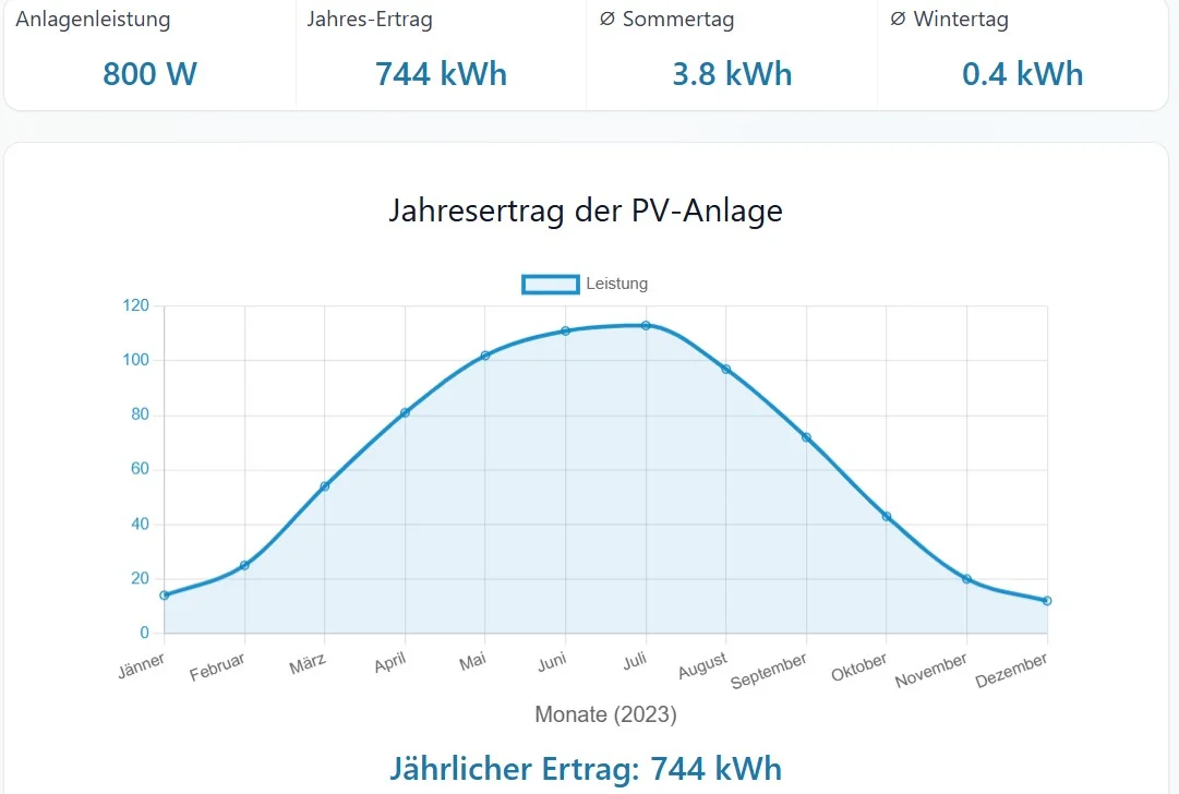 Habe in den Balkonkraftwerk Rechner aus Deinem Link alle Daten eingegeben und das kam raus: