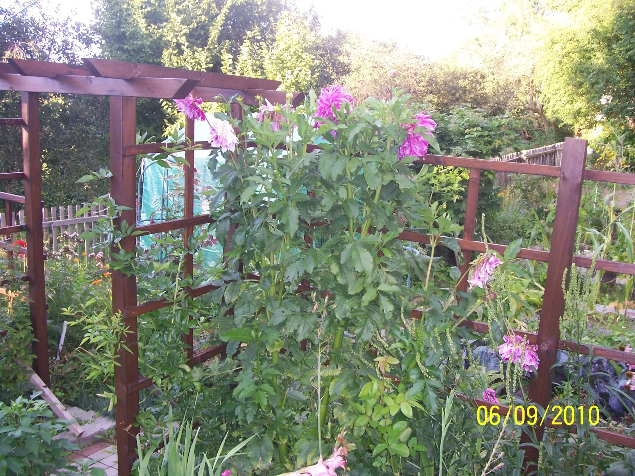 Dann hier mal einige Bilder von der Rosenwand, wobei die Rosen derzeit nicht so doll blühen, aber was will man im ersten Jahr auch erwarten. Aber sie haben teilweise schon eine Höhe von 2 m erreicht. Aber schaut Euch mal meine Dahlie an der Rosenwand an, sie hat derzeit auch eine Höhe von 2 m. Ich glaub die ist mutiert, so eine riesige Dahlie hat ich noch nie.