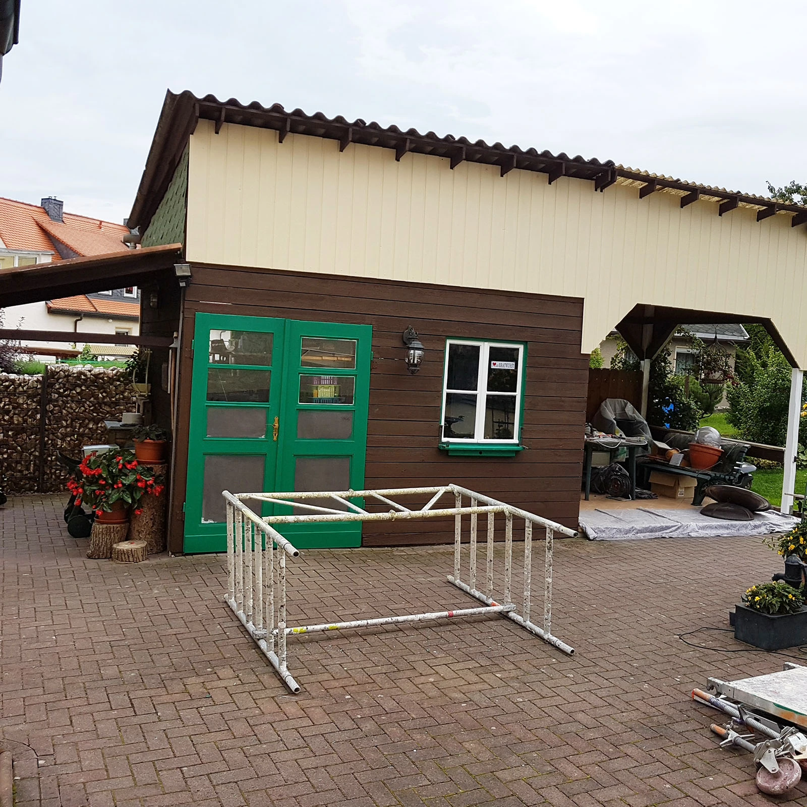 Ich hatte von Verwandten einen jungen vielseitigen Handwerker empfohlen bekommen, der mir unseren Schuppen technisch und optisch auf Vordermann gebracht hat. Das bringt auch zusätzliche Bewegung in den Alltag eines alten Stoppelhopsers.