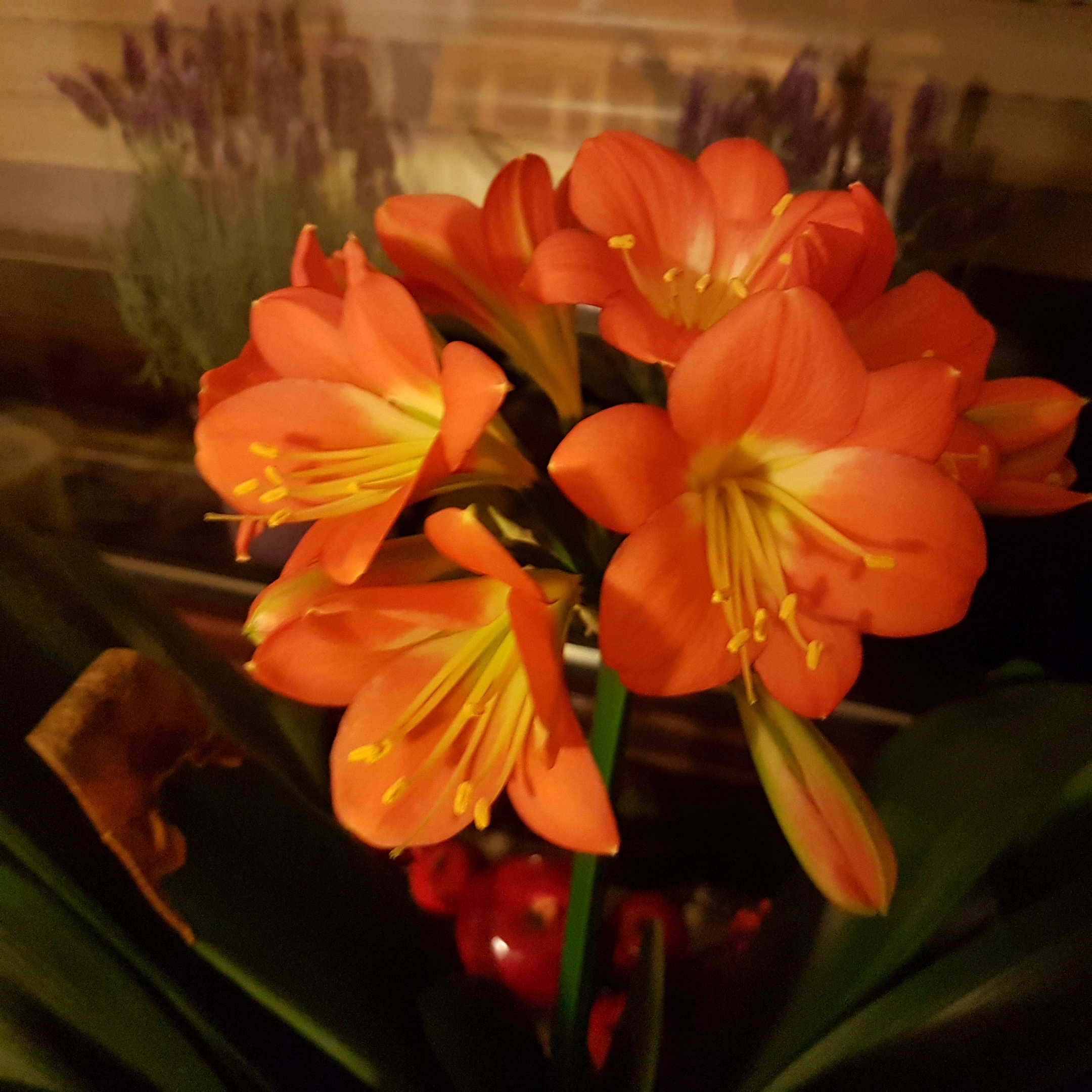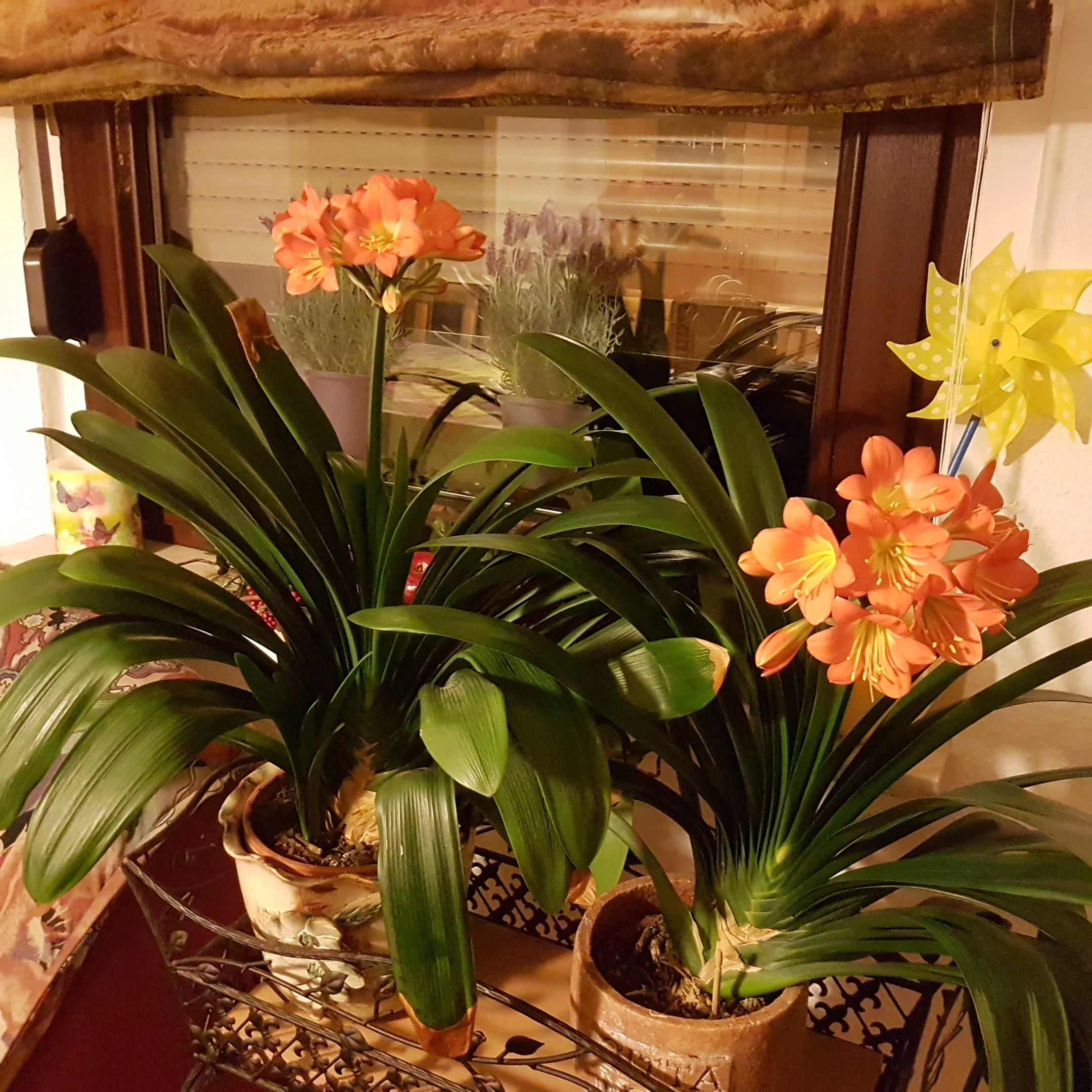 Die Clivien sind hart genug, auch wochenlangen Aufenthalt in einem mäßig hellen Keller zu verkraften, wenn Familienfeiern ihren Stammplatz beanspruchen.