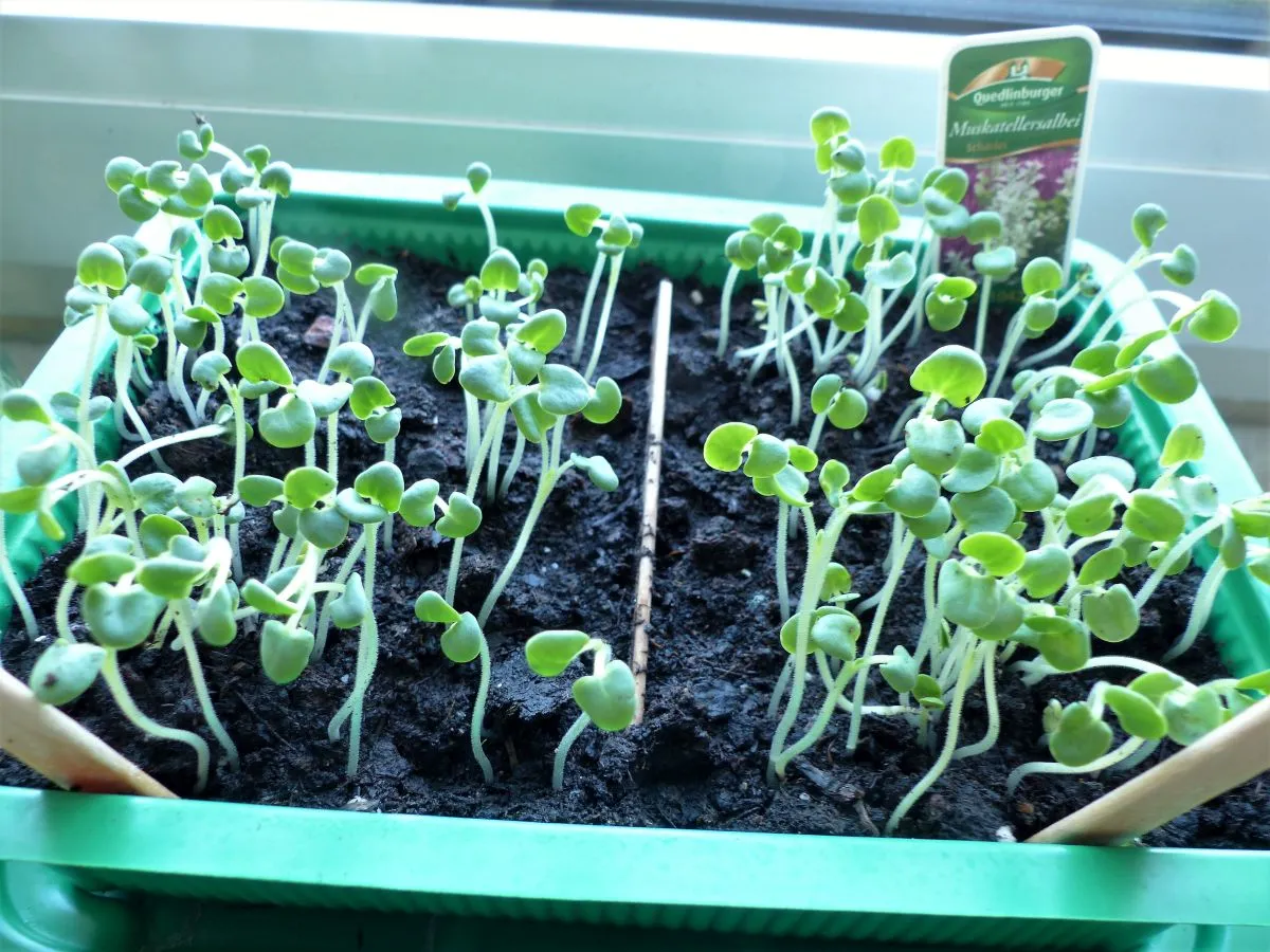 Jedenfalls sind noch zwei Fächer im Tray frei, die werden noch gefüllt. Hoffentlich habe ich jetzt wirklich Muskatellersalbei ausgebuddelt.:confused: