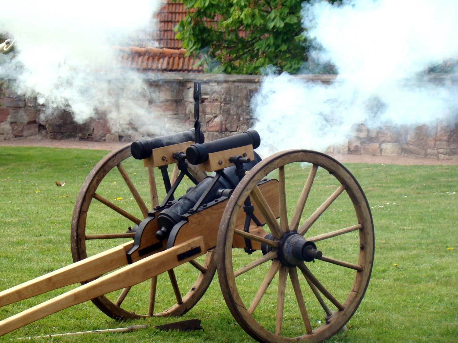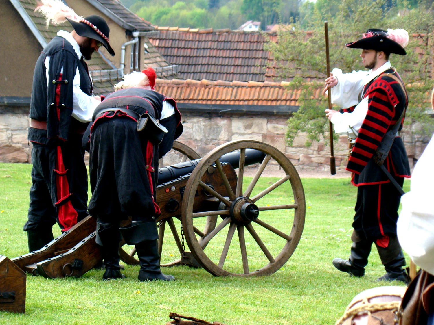 Heute waren als Rahmenveranstaltung die Franken auf dem Schloss und haben dort "scharf geschossen". Sie waren begeistert, dass im Exerziersaal des Schlosses die inzwischen deutschlandweit bekannte Ausstellung "Leben und Sterben im Dreißigjährigen Krieg" zugänglich war, und sie mit ihrer historischen Bewaffnung quasi Belegmaterial anbieten konnten.