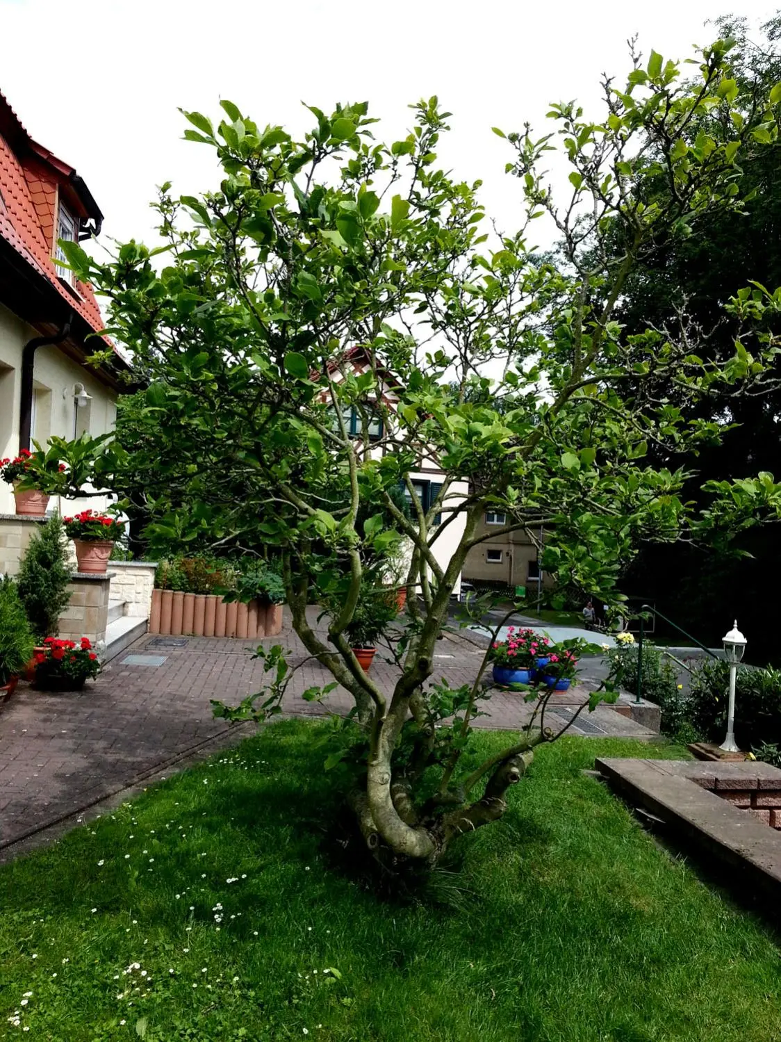 Da Ende Juni eine gute Zeit zum Schneiden bei Magnolien ist, habe ich radikal ausgeputzt. Das Ergebnis ist eine schlanke Madame, wie Du auf den Fotos siehst.