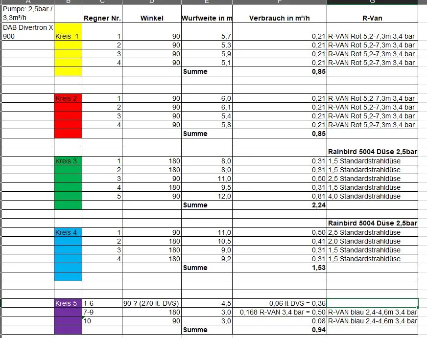 Ich habe mich viel an diesem Thread Hilfe bei Bewässerungsplanung benötigt - Hausgarten.net orientiert, der mir schon sehr weitergeholfen hat.