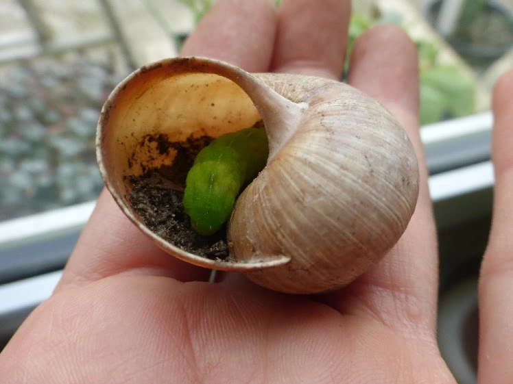 Ja, sieht aus wie die Garden Variety einer Gemüseeule, gell? Hab sie hinten an den Hang gesetzt. Entweder finden sie die Meisen, oder sie überlebt und frisst hinten am Hang aber auch nix Wichtiges an.