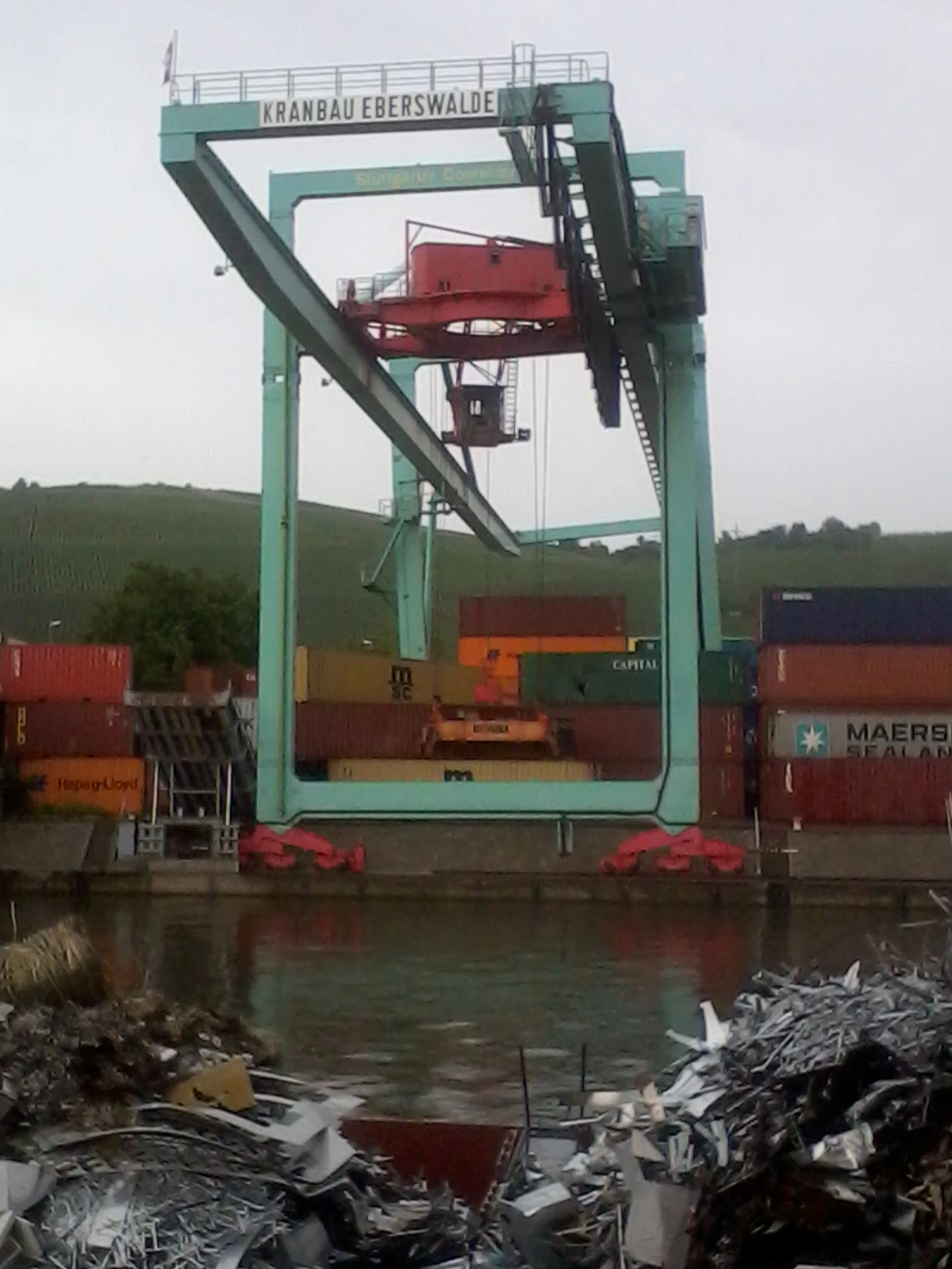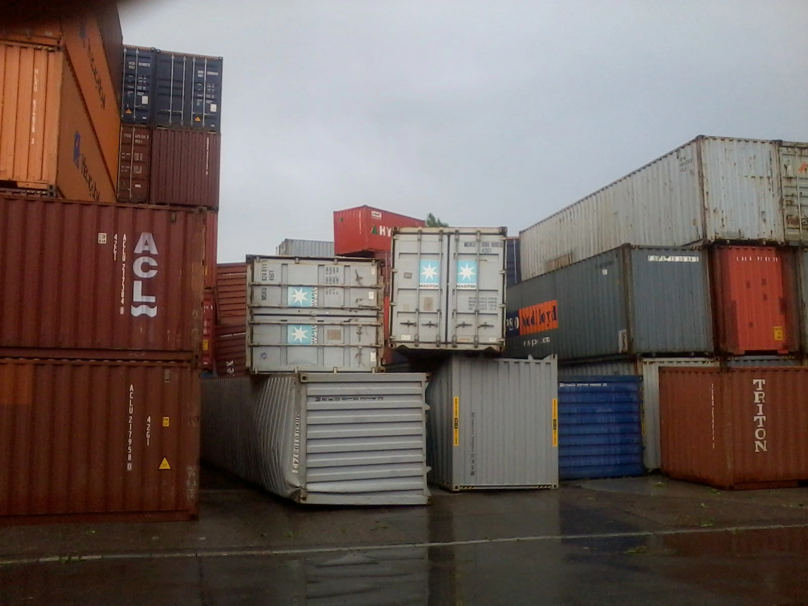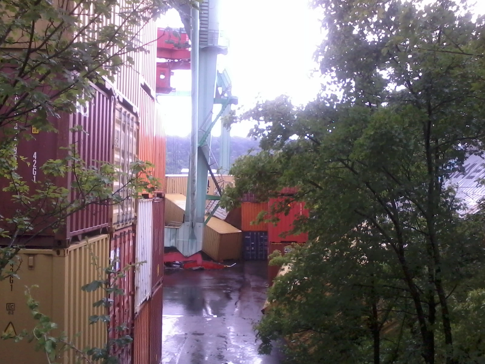 Das war auch mal nach so einem Unwettrer, bei dem uns nicht viel kaputt ging. Aber ein paar Meter weiter musste es wohl eine kleine Windhose gegeben haben. Die Riesencontainer sind durch die Luft gewirbelt worden wie Bauklötzchen und der Kran wurde aus der Verankerung gerissen.