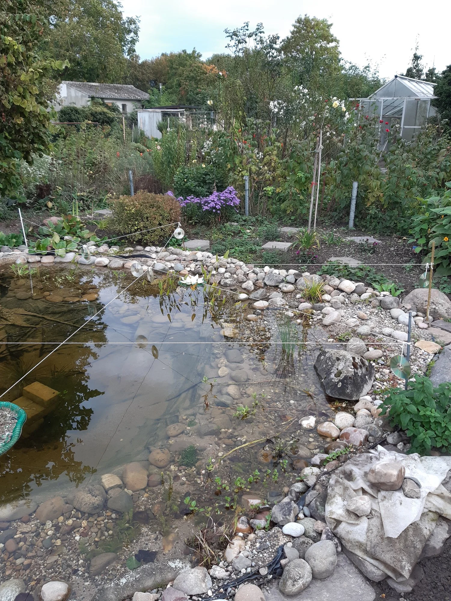 Wir sind fertig! In strömendem Regen haben mein Bruder und meine Nichte den Teich ausgeräumt, während ich die Pflanzen seziert habe, dass von jeder Art etwas zum wieder einpflanzen übrig blieb. Seerose, Fieberklee, zwei Binsen, Iris... nebenbei mussten unzählige Eimer Wasser ausgeschöpft und im Garten verteilt werden. Mein Rücken war irgendwann dagegen.