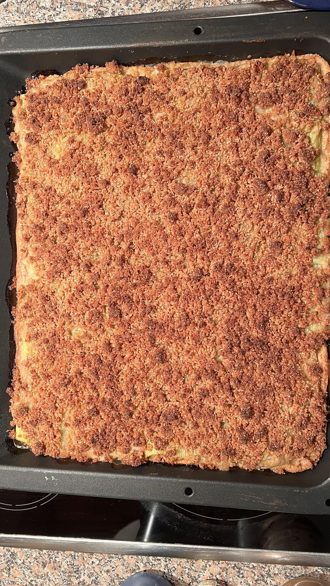 Ich habe es gut gemeint mit dem Rhabarberbelag. Kostet mich ja nichts.Der sieht wirklich lecker aus.