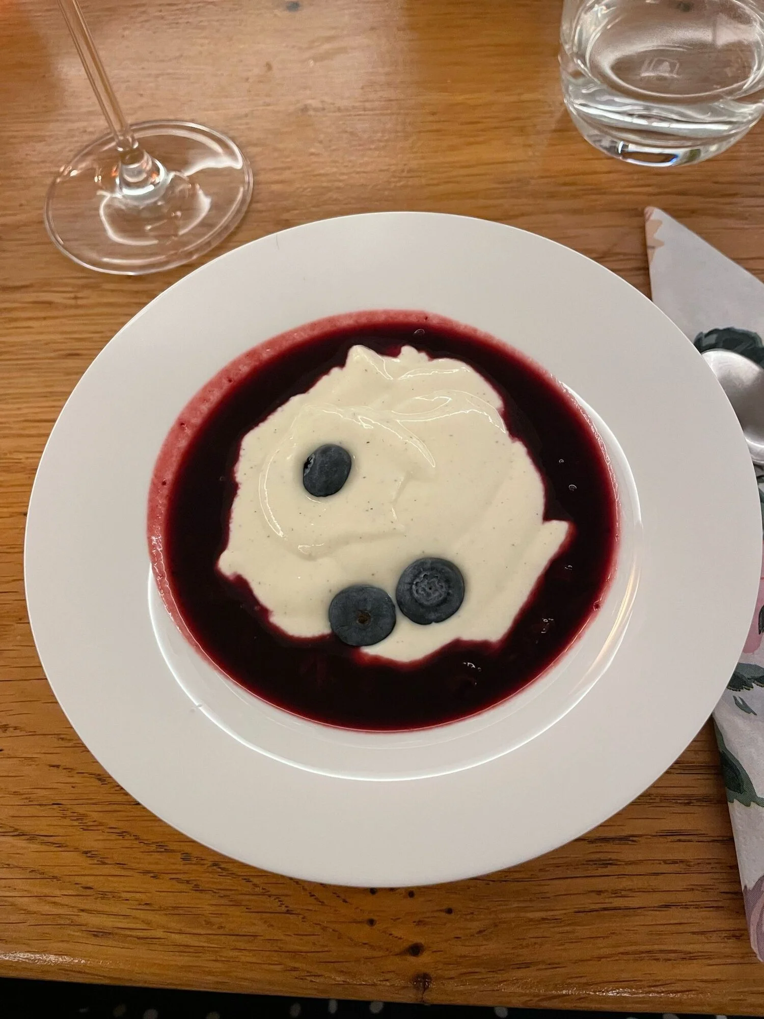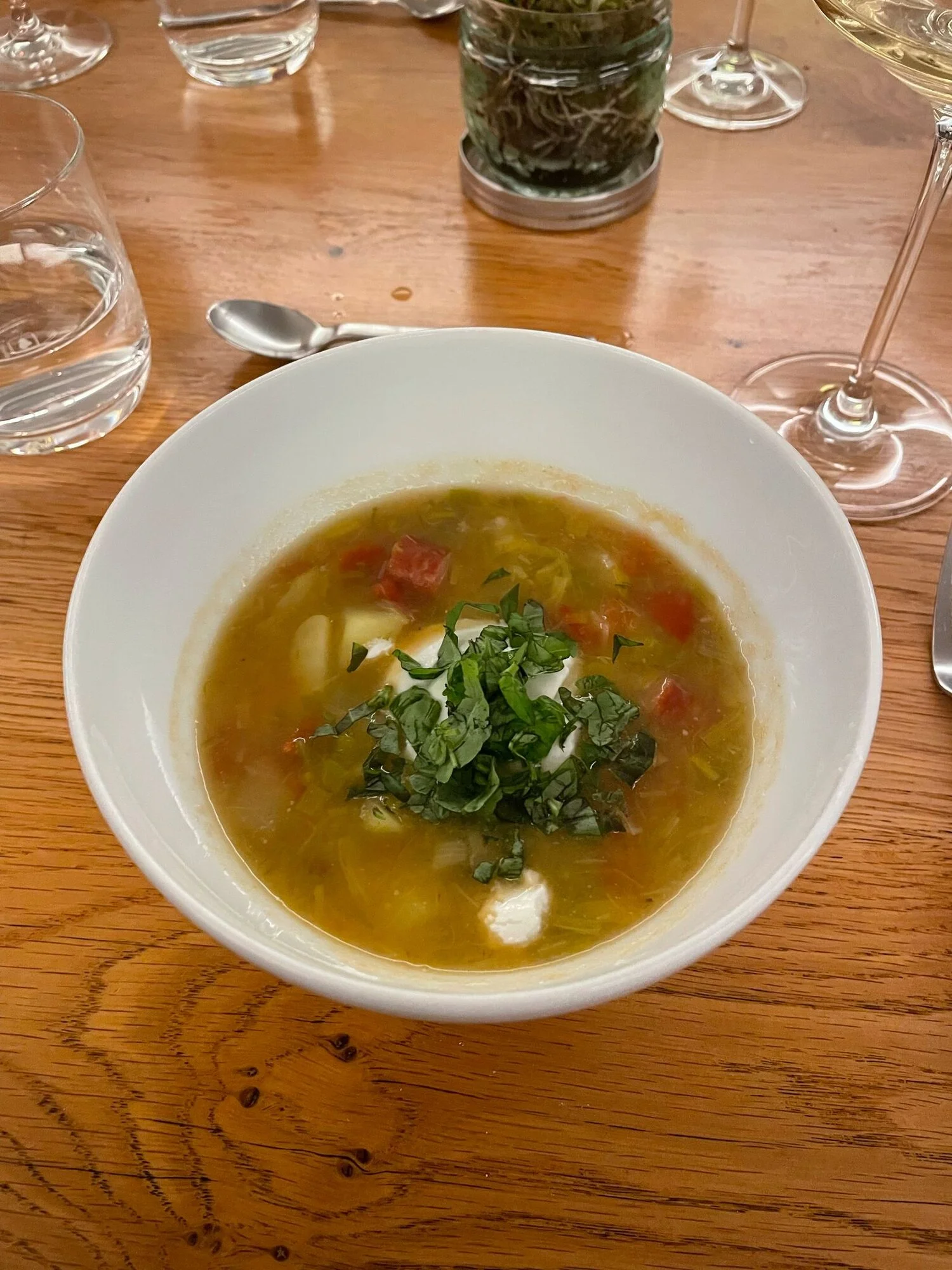 Mir würden die Kartoffelsuppe und das Dessert reichen.