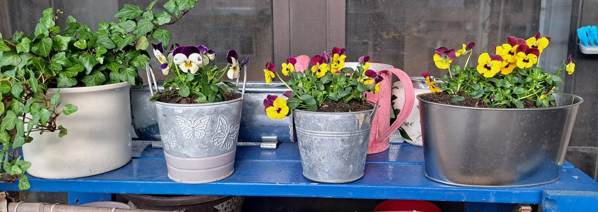 Da ich kein Auto habe, bin ich wegen der Hornveilchen und Bellis noch mal extra los, Blöd dann passt noch mehr in die Tasche. Aber das Fensterbrett seiht wirklich gut aus.