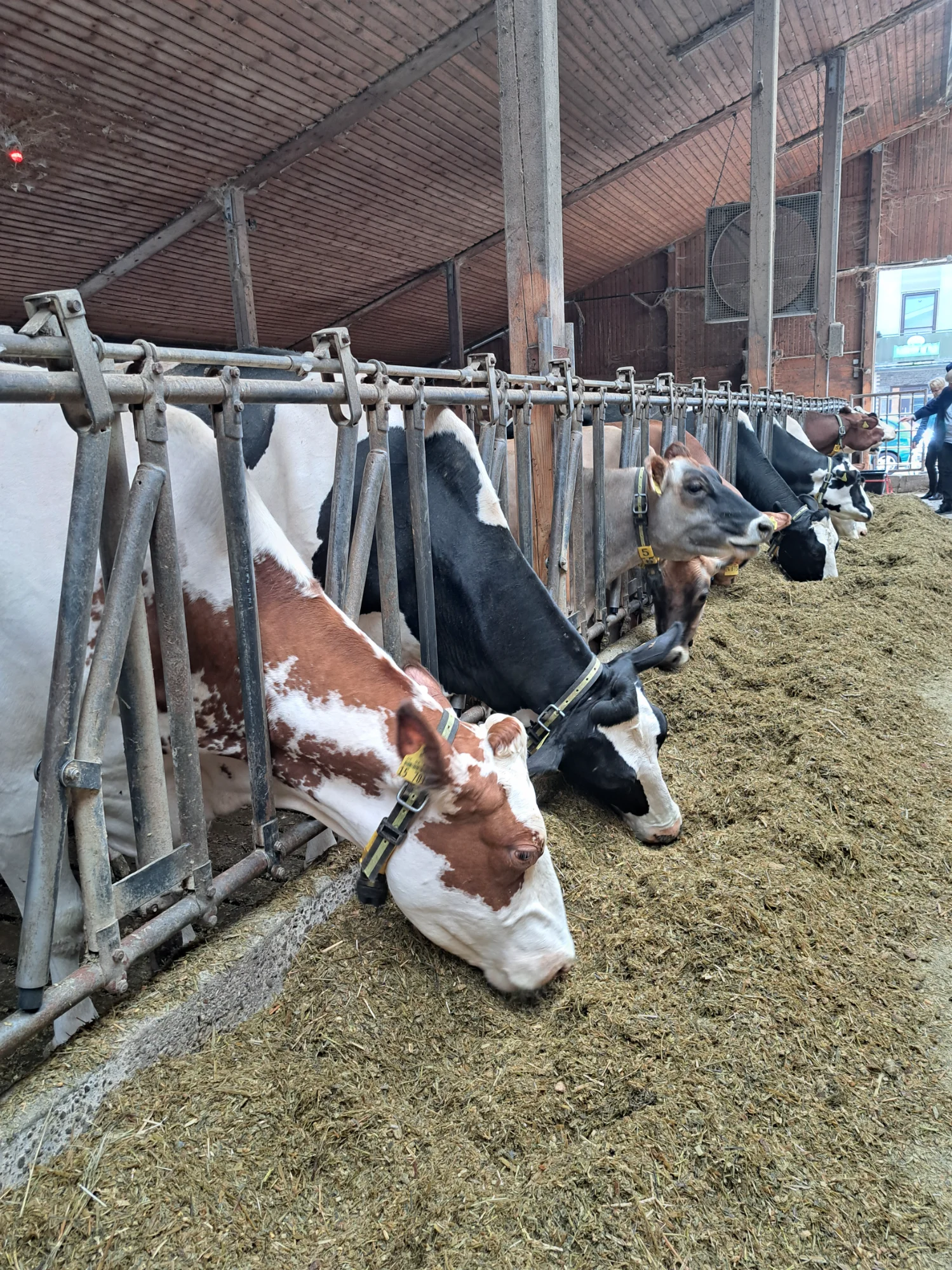Der nah gelegene Milchvieh Bauernhof konnte besichtigt werden. 120 Milchkühe, 160 Jungtiere in Offenstall Haltung, viele auch direkt auf der Weide. Der Hof wurde schon mehrfach prämiert. Eine Weide ist direkt an der Gartenanlage, und vor ein paar Wochen war da plötzlich ein Kälbchen