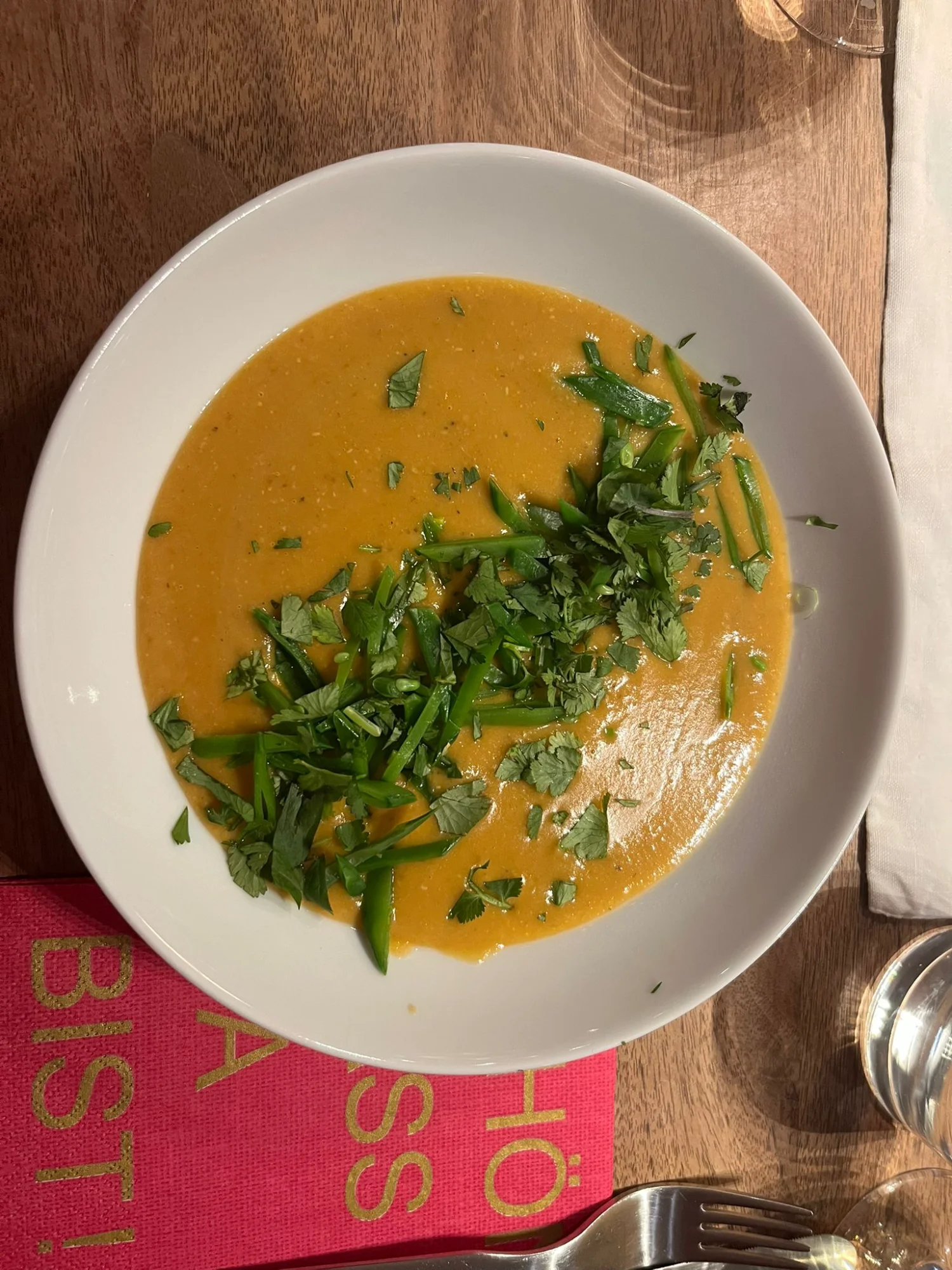 Bitte jetzt zum Warmwerden eine Portion der Linsensuppe - und wenn ich die anderen Gänge morgen essen dürfte?