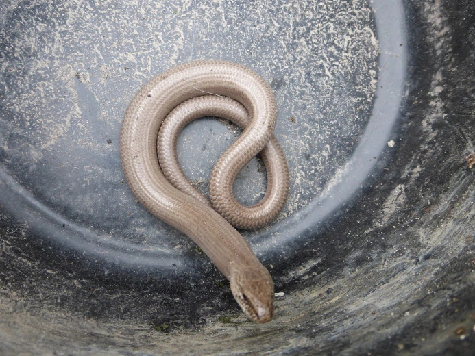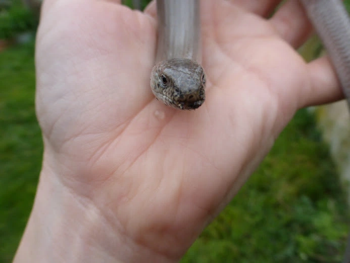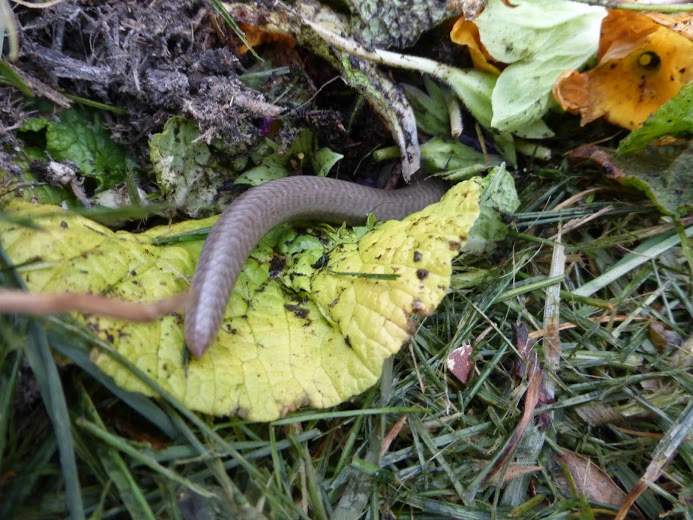 Die musste mit zum Fotografieren, danach hat sie sich wieder in den Kompost geringelt. Sie ist zwar eine Schleiche und keine Schlange, aber da sie auf meiner Hand nicht gerade schockstarr war, sondern ringelig, kam ich mir schon ein bisschen vor wie ein Schlangenbeschwörer *lach*.