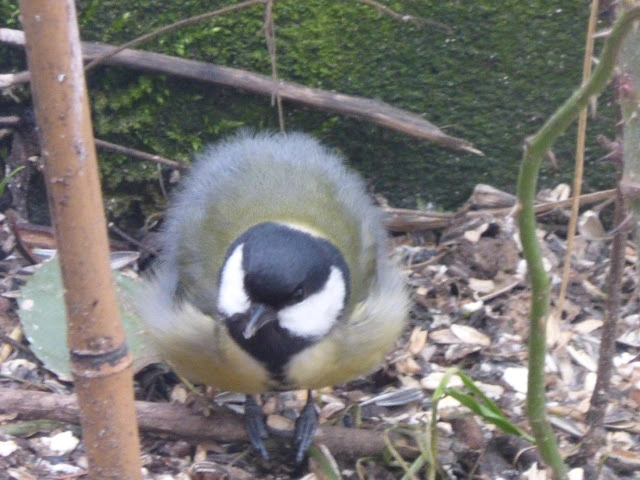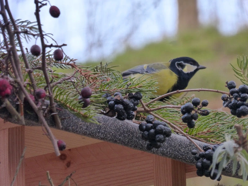 Da's wärmer ist, sehen alle Vögel wieder halbwegs normal dick aus. Bloß dieser Kohlmeiserich hat wohl vergessen, wie man die Fusseln wieder einklappt: