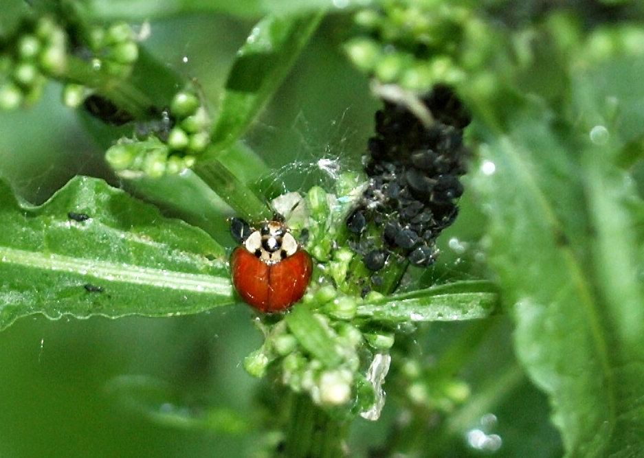 Die Brombeeren bzw. die Blüten und Stiele meiner Vermieterin sind total verlaust (Kolonien von schwarzen Blattläusen). Mir tut es in der Seele weh, aber ich wette, sie hat es nicht einmal bemerkt (letztes Jahr hat sie die Beeren alle am Strauch vergammeln lassen).