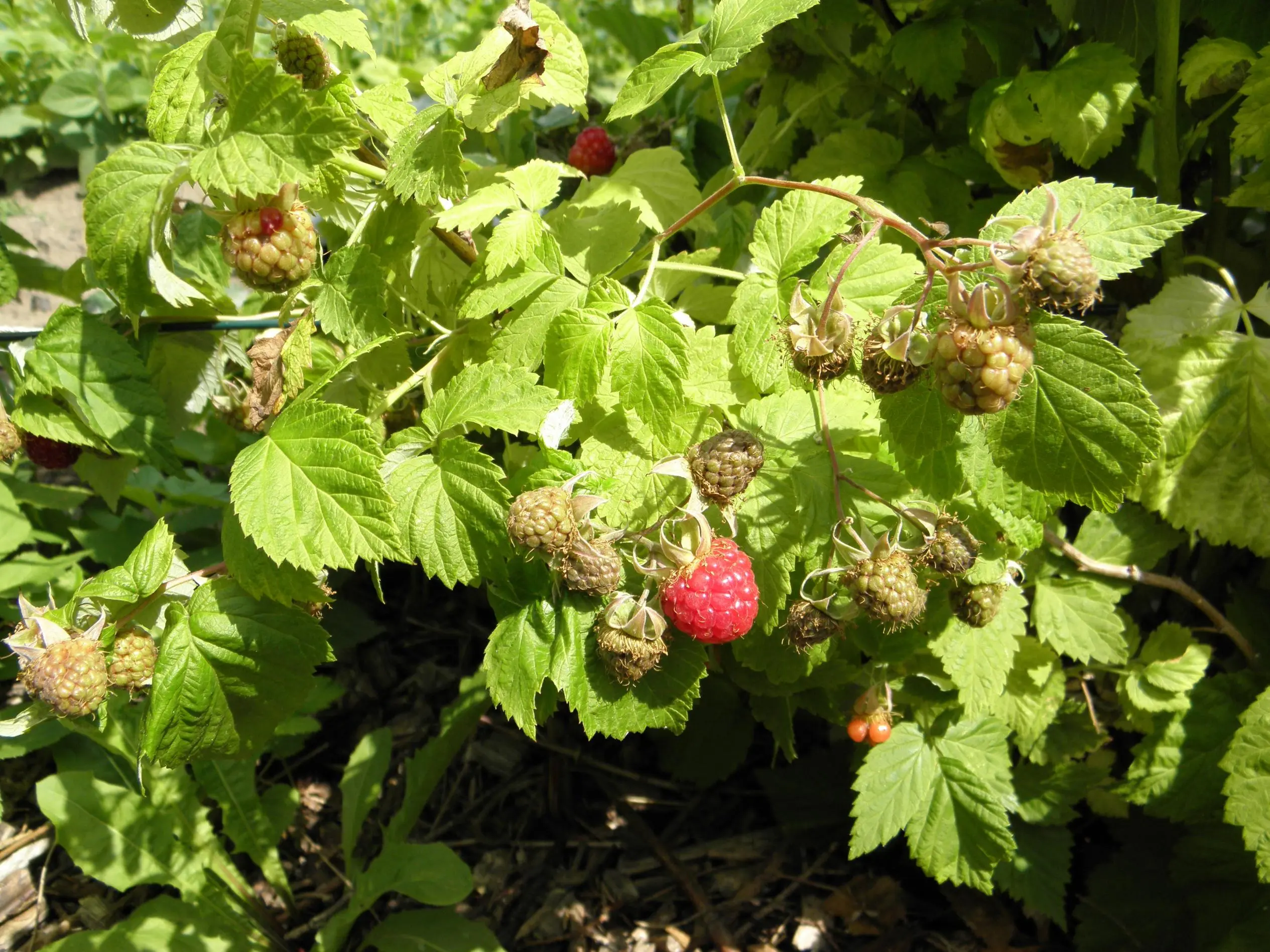 Die ersten Himbeeren konnte ich auch schon ernten. Lecker...