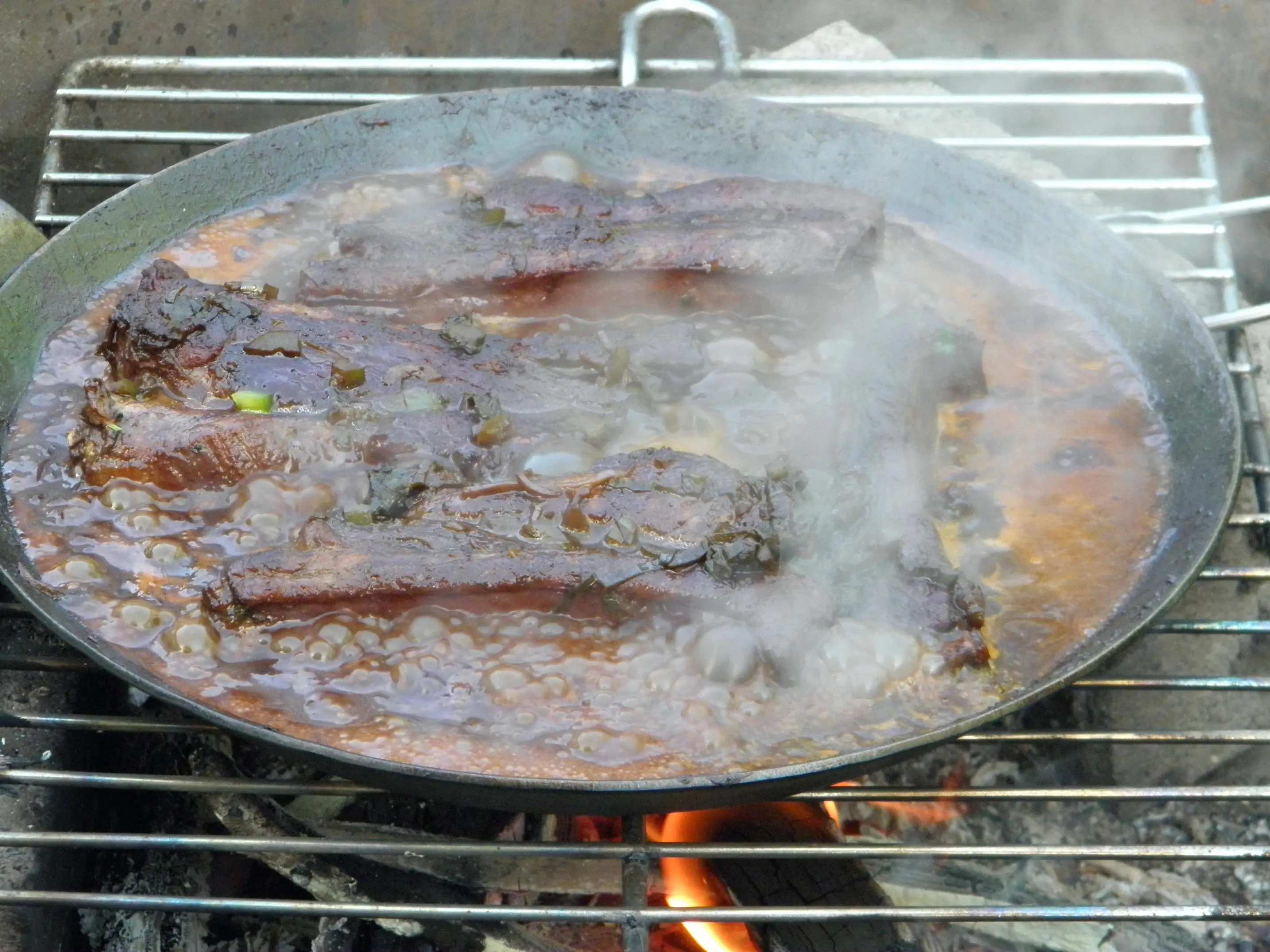 Heute Abend wird der Grill angeworfen. Wir grillen "Dicke Rippe vom Borstentier". Da diese sehr lange brauchen bis sie gar sind schmoren wir sie in einer Eisenpfanne mit Zwiebeln, Paprika und Rotwein fertig. Mal sehen, ob da das Bilder einstellen besser klappt.