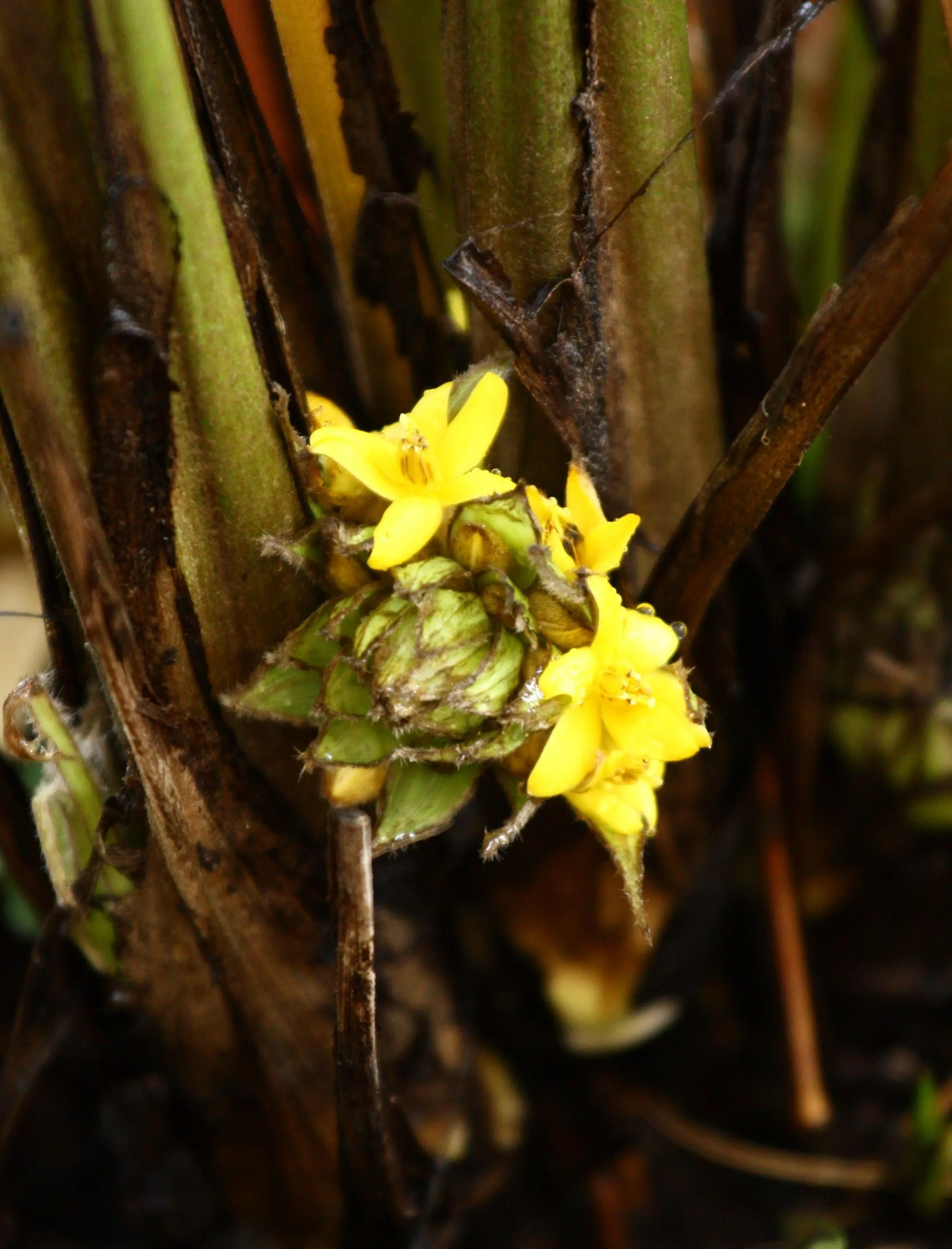Die mehr als unscheinbare Blüte des Palmgrases (Curculigo capitulata)