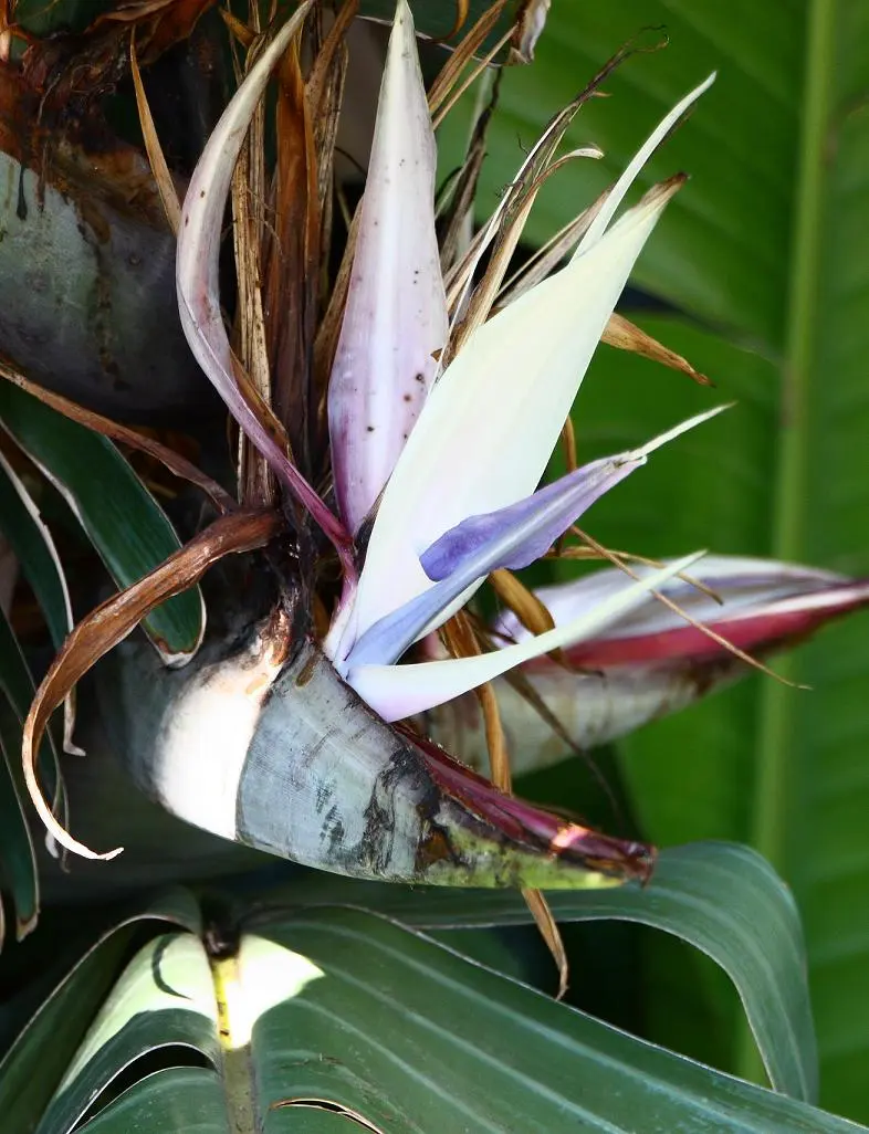 Die sehr große Blüte einer Baumstrelizie, die hat schon was. Ob unsere beiden Pflanzen jemals blühen werden???