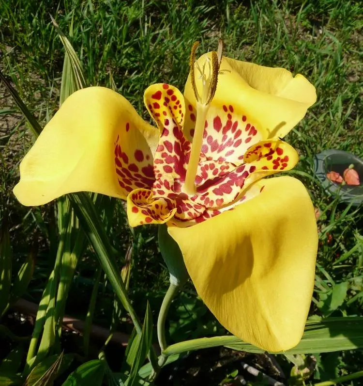 Deine Tigerlilie / Tigrida pavonia ist ein schönes Exemplar, schade dass die Blüte immer nur so kurz ihre Schönheit zeigt.
