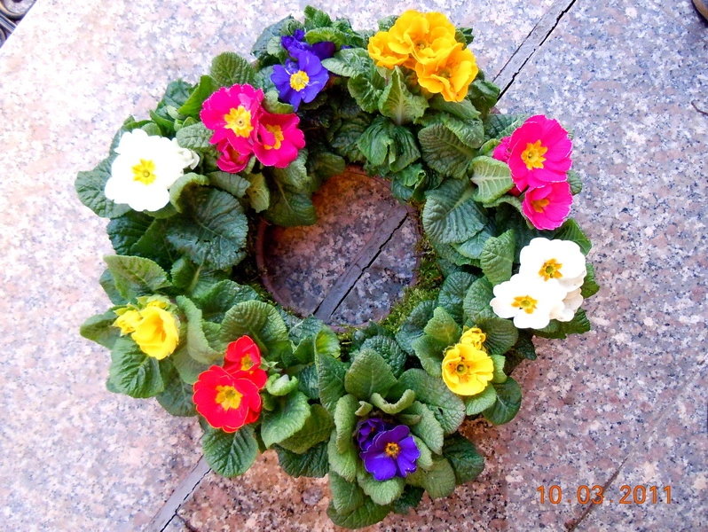 diese Kränzchen aus Primeln hab ich für den Friedhof bepflanzt