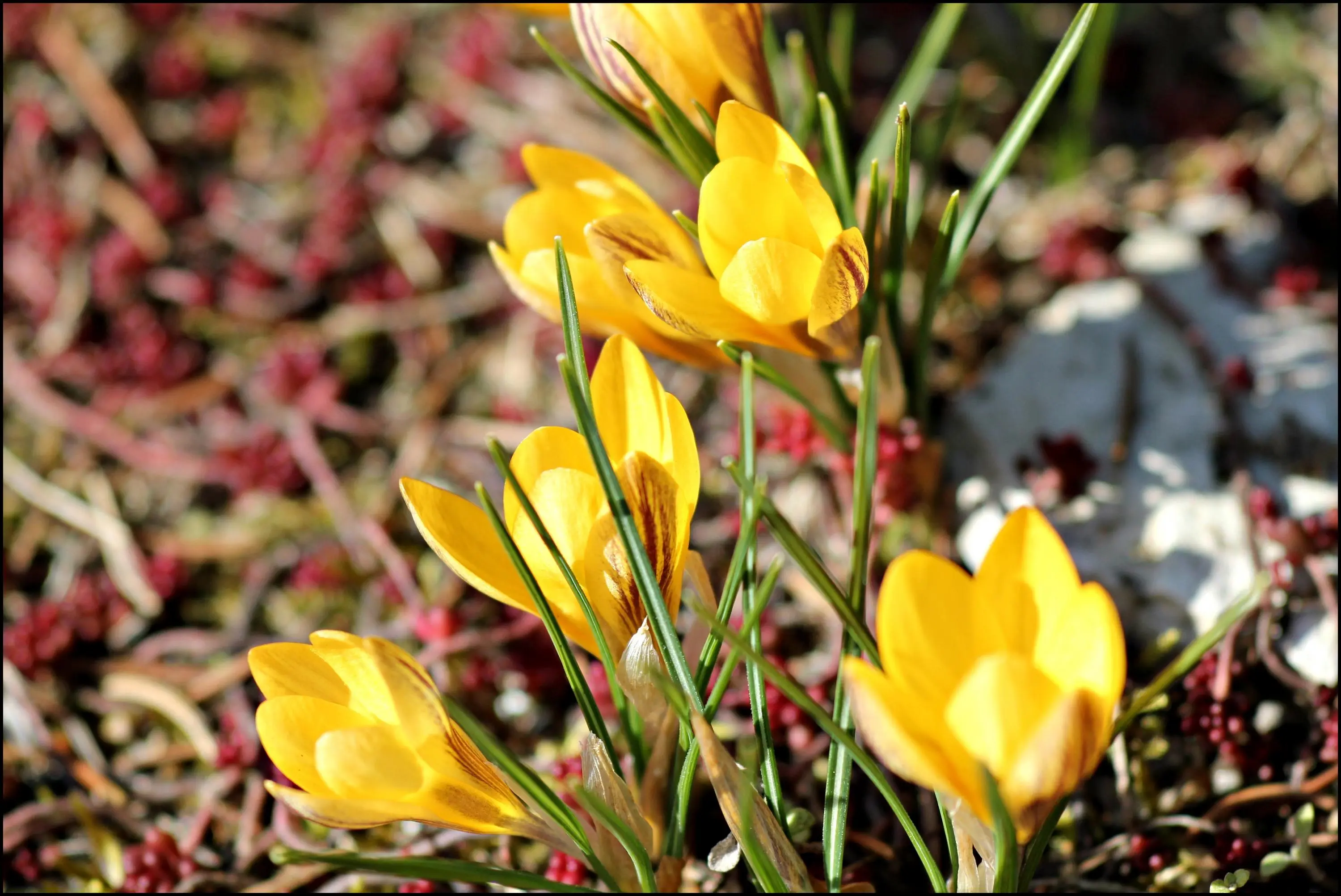 Krokusse und Schneeglöckchen blühen bei uns auch .