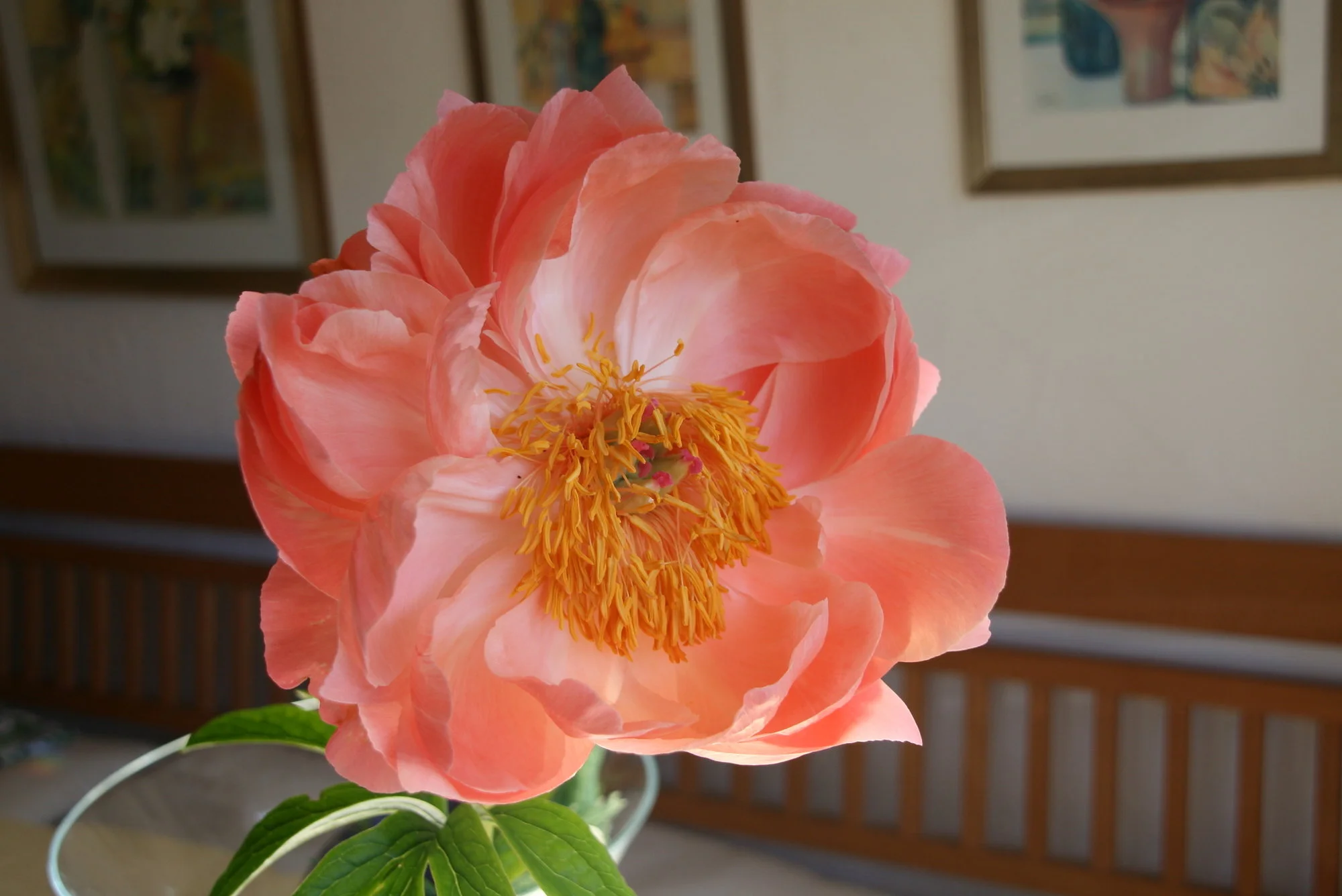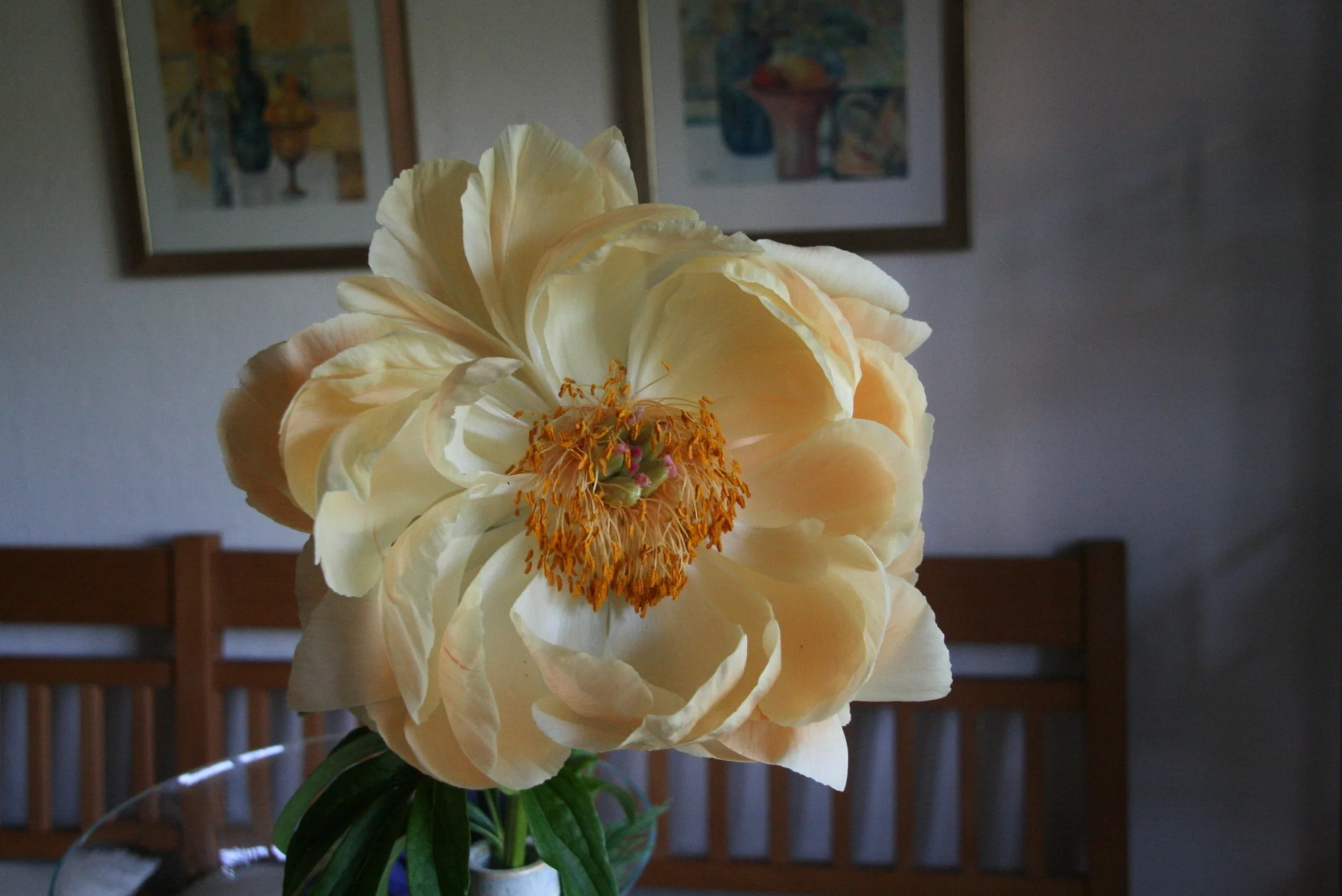 • Ich habe vor ein paar Tagen von einer Freundin eine einzelne Pfingstrosenblüte bekommen. Sie sagte mir, die ist erst apricotfarbig, dann wird sie am Schluß gelb. Das habe ich fotografisch festgehalten und das stimmt wirklich. Seht selbst.